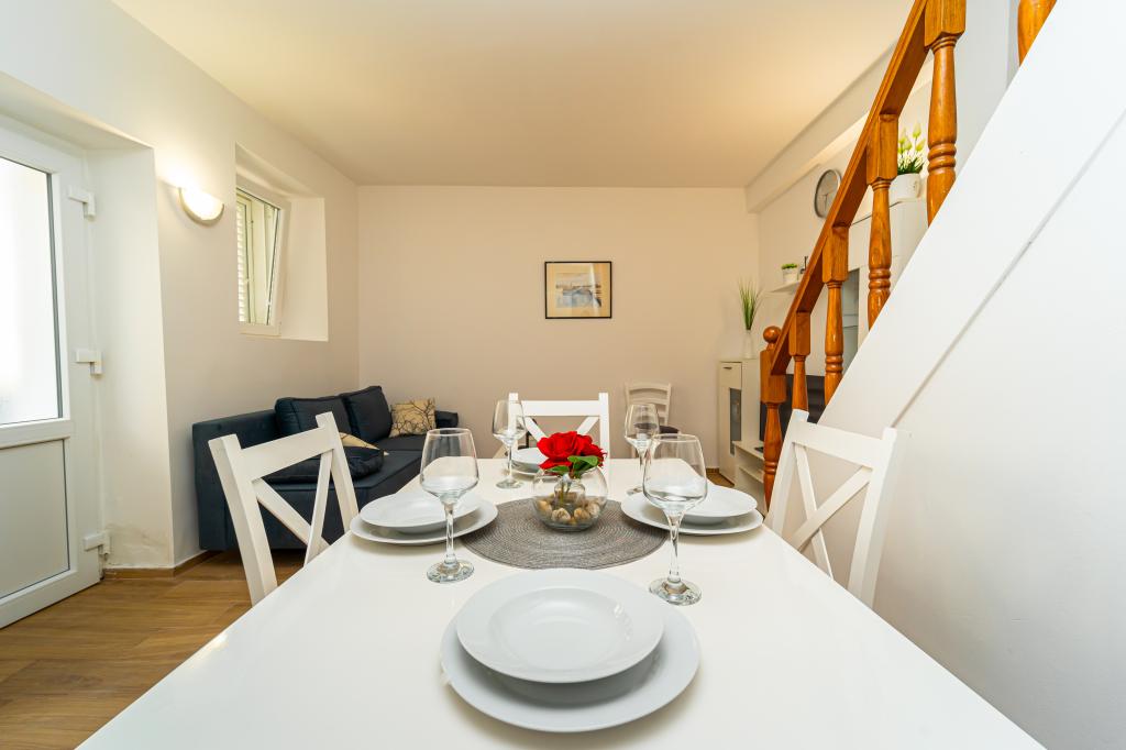 Marina Hiša se nahaja v starem mestnem jedru Privlaka, le 10 metrov od čudovite peščene plaže. To je v celoti opremljena tradicionalna kamnita hiša, ki je bila obnovljena v prvotni arhitekturi, skupaj z okolico ponuja mir in vzdušje starega dalmatinskega mesta, zato je idealna za družine z otroki. Ima dve spalnici, kuhinja, jedilnica, dnevna soba in kopalnica. Hiša ima talno in soba ima teraso s pogledom na celotni dolžini morja. V bližini je tradicionalna kavarna in posedeti na terasi in gledam morje, čolne in eno izmed najlepših sončnih zahodov izkušenj, ki se ne sme zamuditi. Vsi gostje so na razpolago, in gostitelji bo vedno pomagal pri reševanju žaru dalmatinske specialitete. Če želite, da bi našli mir, čisto morje, lepe narave in nepozabnih sončnih zahodih potem Marina hiša je idealna izbira za vas.