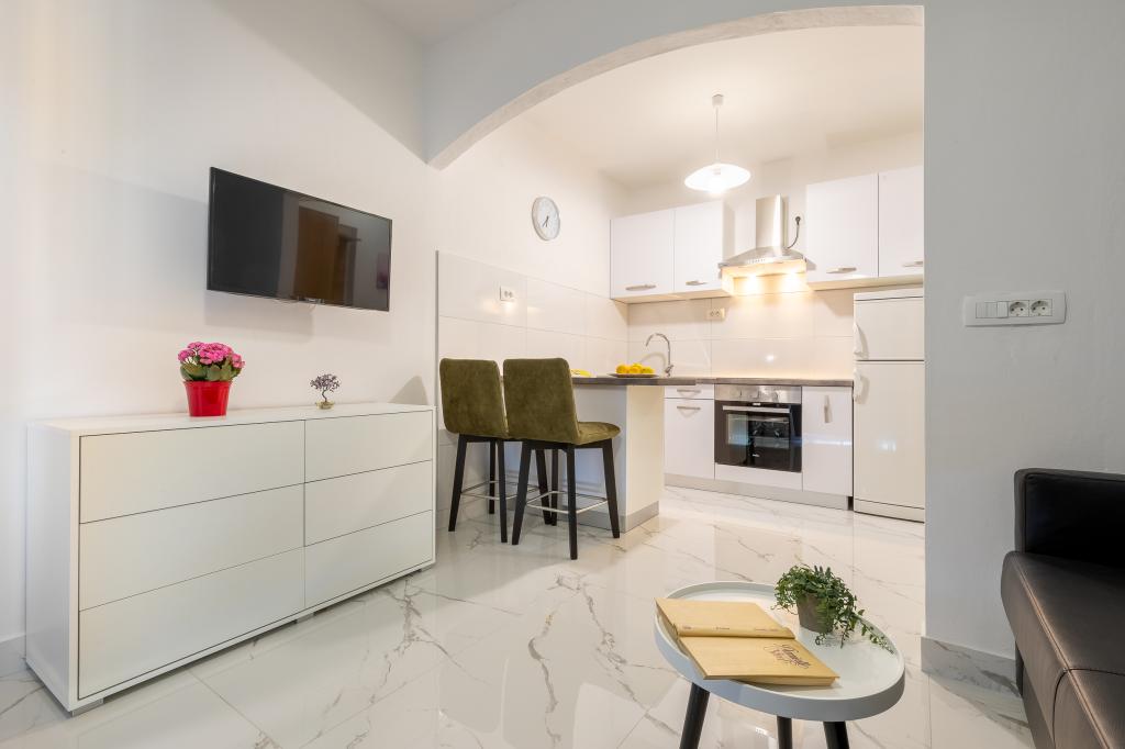 Preberite več Namestitvene enotePredplačilo znaša ~30% celotne cene namestitve. Preostali znesek se plača z gotovino ob prihodu. Prihod po 14.00, odhod do 10.00. V apartmajih A4+1 in A2+1 se za dodatno osebo doplača 15 € na noč. Hišni ljubljenčki so dovoljeni v vseh apartmajih razen A2+1, z doplačilom 15 € na noč.