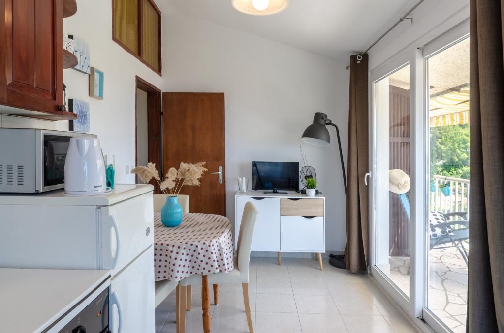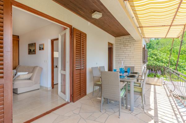 Apartma je na mirni lokaciji, ravno prav oddaljen od centra in plaže ter z odličnim pogledom na morje. Apartma je prostoren z veliko pokrito teraso, z dovolj opreme in čist. Lastniki so zelo prijazni in ustrežljivi. Priporočava ga vsem, ki si želijo mirnega oddiha v neokrnjeni naravi.