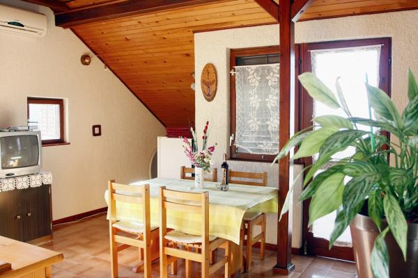 Dvosobno stanovanje za štiri ali pet oseb, popolnoma opremljeno in opremljeno. Dve spalnici imata dve postelji in možno je uporabljati dodatno ležišče. Kuhinja, jedilnica, dnevna soba, kopalnica, terasa s čudovitim pogledom na morje in planino Biokovo. Stanovanje se nahaja v tretjem nadstropju. Pred hišo je vrt in žar na voljo vsem gostom za uporabo. Objekt je od plaže in centra Promajne kratek sprehod. Vsi drugi potrebni objekti so v neposredni bližini.