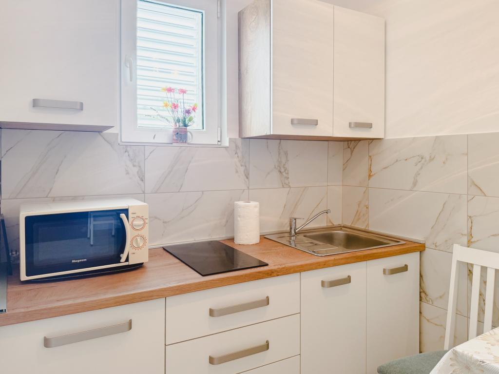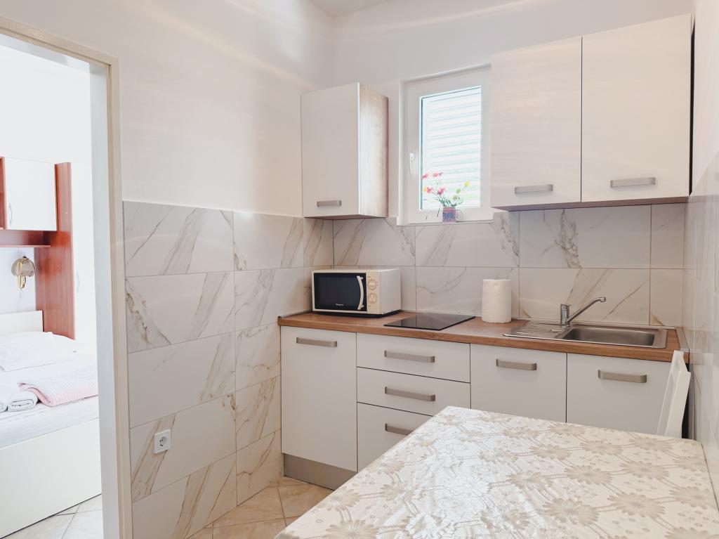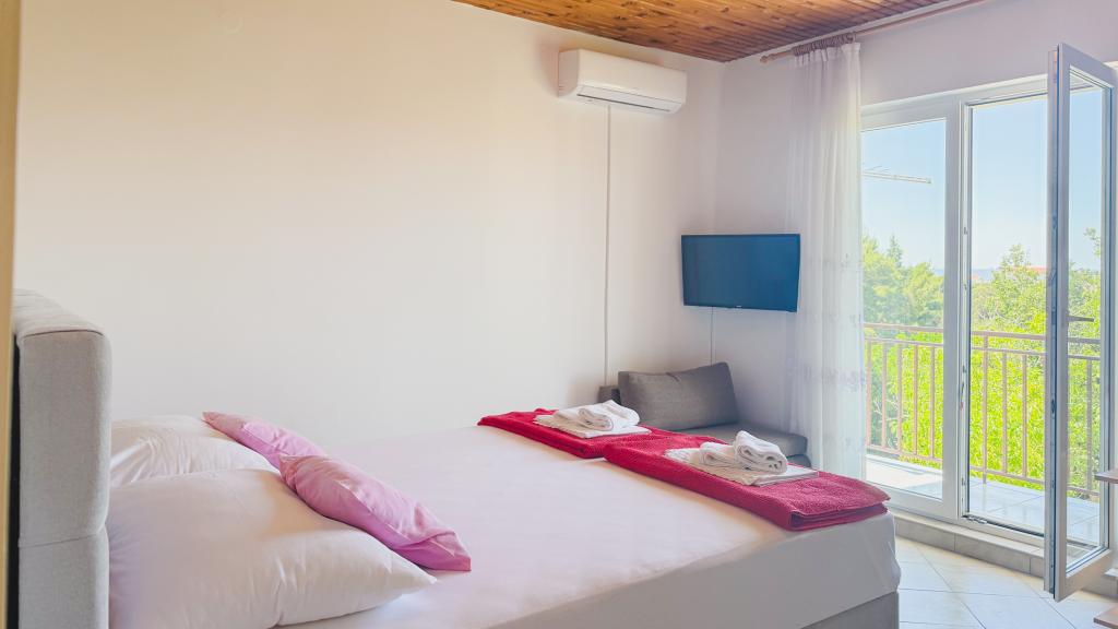 Apartmaji Rosemary se nahajajo v mirnem delu Promajne, stran od hrupa turistov in avtomobilov. Pot do plaže je 300 metrov. Naši apartmaji imajo zasebne balkone s pogledom na morje, zasebno parkirišče, klimatsko napravo, 2 spalnici in zasebno kuhinjo. Za hišo je skupna terasa v senci.