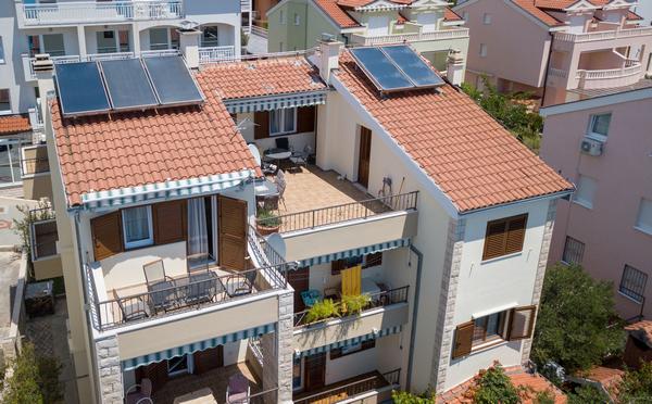 V hiši je skupno 6 apartmajev. Vsi apartmaji so opremljeni s klimatsko napravo in brezplačnim brezžičnim internetom. Pred hišo je veliko dvorišče z oljkami in parkirišče za vse naše goste.