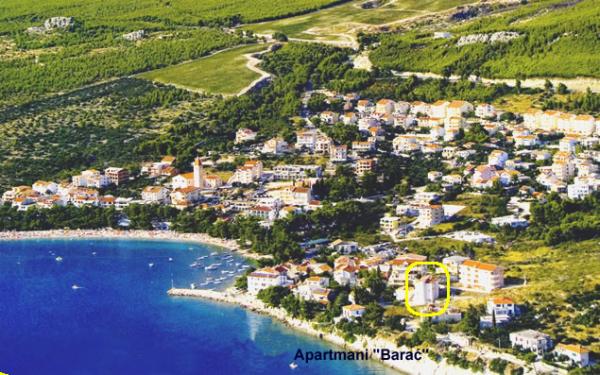 Apartmaji Barać se nahajajo v mirnem okolju, imajo čudovit pogled na morje in so od centra mesta in dolge prodnate plaže oddaljeni približno 150 metrov. V hiši nudimo garsonjere in apartmaje z ločeno spalnico kategorije tri zvezdice. Vsi apartmaji so klimatizirani, imajo ločeno kopalnico, kuhinjo, SAT TV in brezžični internet. Kuhinje so opremljene s hladilnikom in standardnimi kuhinjskimi pripomočki ter posodo, obstaja pa tudi možnost uporabe zunanjega žara. Dobra izbira za vse tiste, ki želijo bivati v mirnem okolju, blizu svoje sanjske plaže.