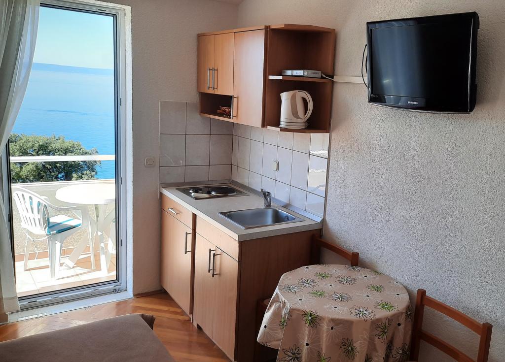 Turistična taksa je vključena v ceno.Bivali smo v dvoposteljni sobi s kuhinjsko nišo. soba ima likalnik, sušilec za lase, tudi čajna kuhinja je bila dobro opremljena. Soba ima čudovit pogled na morje in gore, blizu je morja in mesta. Gostitelj je zelo ustrežljiv in prijazen. Priporočam bivanje v apartmaju.