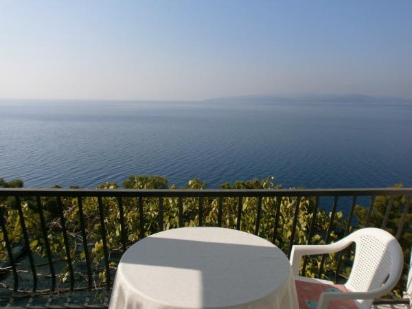 Prostoren, celo sterilni apartma, velika terasa s čudovitim razgledom, po tedenski menjavi brisač in posteljnine, tišina, mir, prijazen lastnik, blizu majhne in intimne plaže, samo plusi .... toplo priporočam vsem, ki se želijo resnično sprostiti.