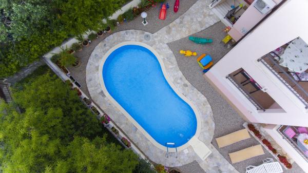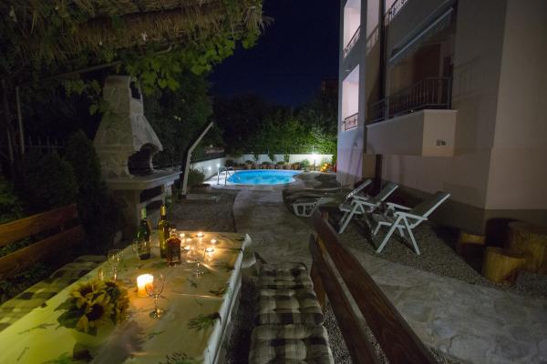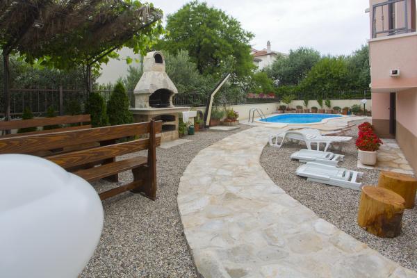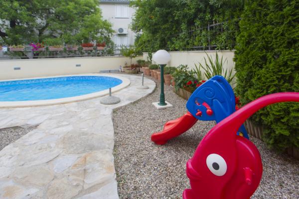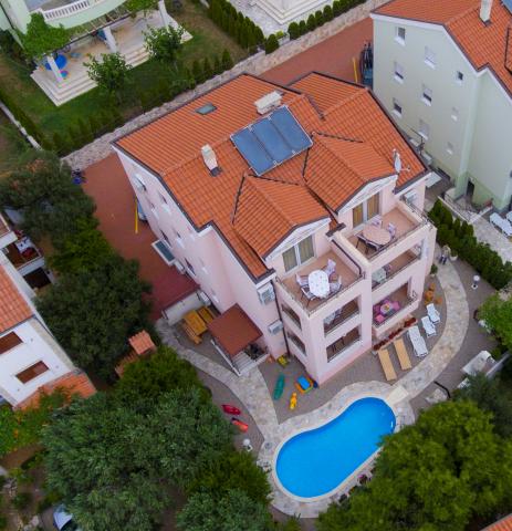 - Apartmaji "Bojka" (ulica "Obala 24 C") vključujejo uporabo skupnega bazena in žara z mizo in klopcami, po potrebi otroške posteljice in hranilnice, 1 parkirišče/avto,