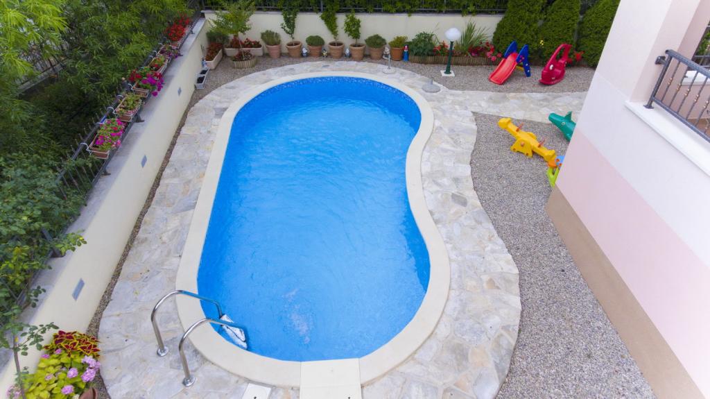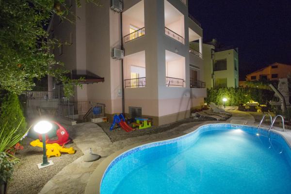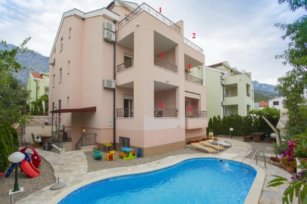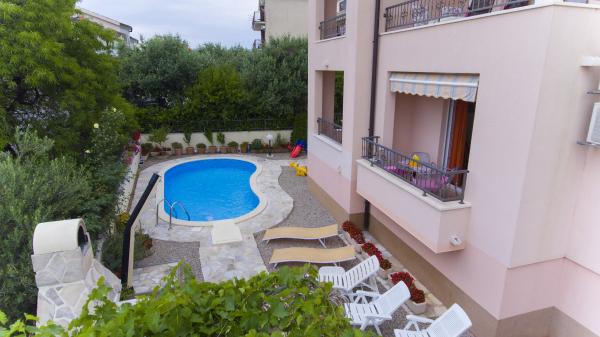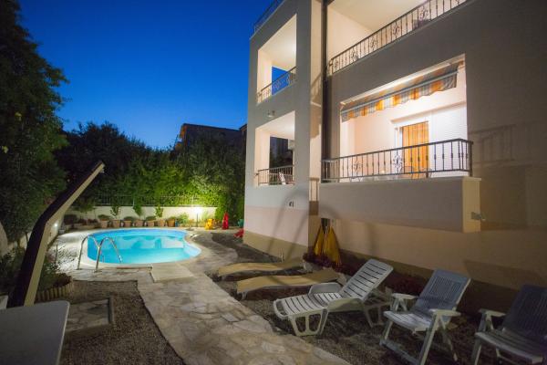 APARTMAJI BOJKA - nova hiša z bazenom, z luksuznimi apartmaji se nahajajo v mestu Promajna, v ulici Obala 24 C, v centru mesta, cca 90 m od glavne plaže. Poleg namestitve v ekskluzivno opremljenih apartmajih vam je na voljo tudi uporaba bazena ob hiši. Vse kuhinje so sodobno opremljene (hladilnik z zamrzovalnikom, štedilnik, pečica, kuhalnik vode, pomivalni stroj...), vse kopalnice so sodobno opremljene (likalnik z mizo, pralni stroj, sušilnik za lase...). V vsakem apartmaju je brezplačen wi-fi, oznake so: Bojka 1, 2, 3, 4, 5 in 6. Vsakemu apartmaju pripada eno brezplačno parkirišče. Na dvorišču hiše je žar za vse goste ter miza ob žaru. V objektu je ves čas oskrbnica, ki skrbi za goste.