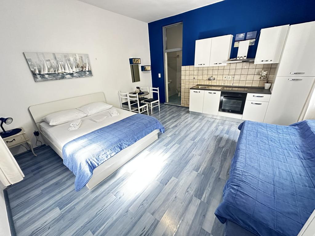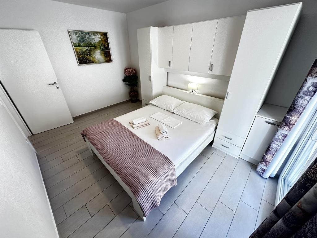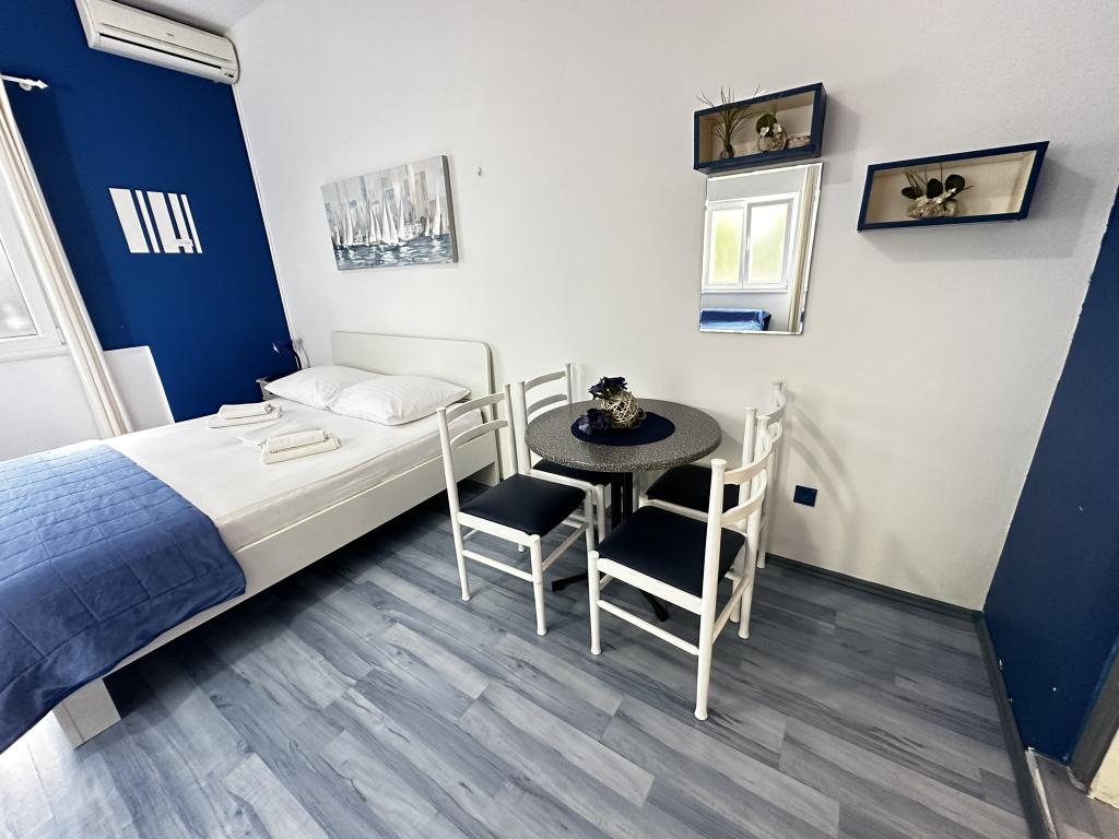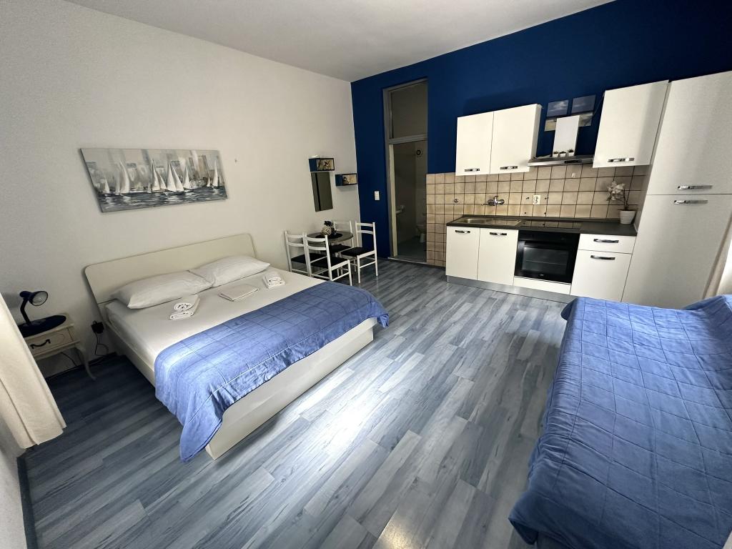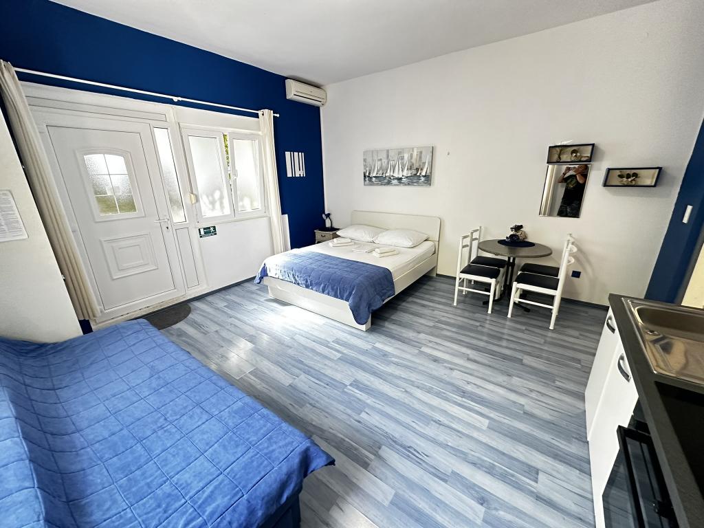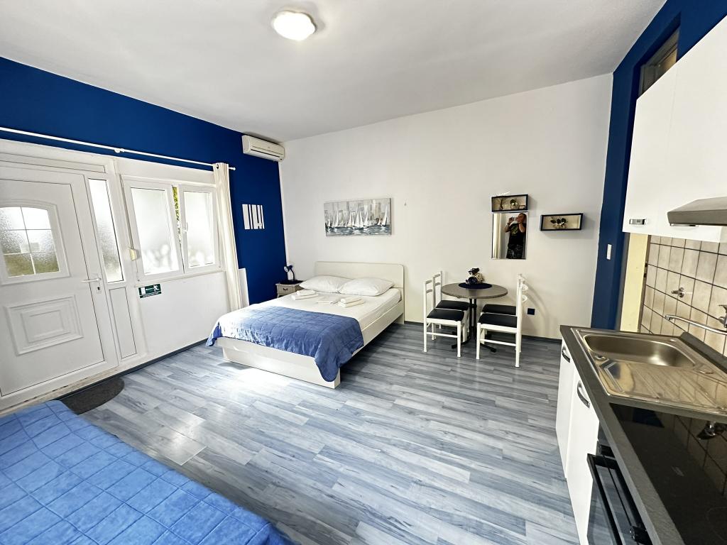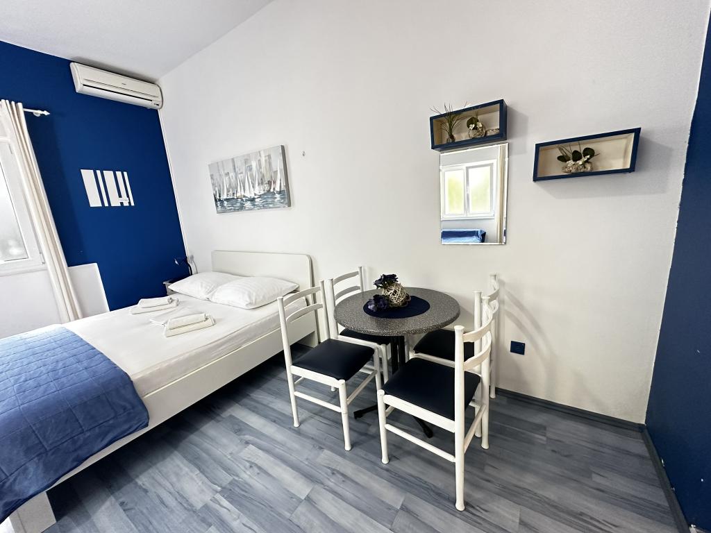 V ponudbi sta dva lepa dvosobna apartmaja, popolnoma opremljena in dve klimatizirani garsonjeri. Dvosobni apartmaji imajo dve sobi z zakonsko posteljo. Eden od apartmajev ima možnost namestitve dveh dodatnih oseb na kavču. Studia imata zakonsko posteljo in raztegljiv kavč in sta primerna za družino z največ 4 osebami, od tega sta 2 otroka. Vse kopalnice v dvosobnih apartmajih so opremljene s tušem, vsebujejo pa tudi pralne stroje in sušilce za lase. Kuhinje so popolnoma opremljene. Vsebujejo pečico, mikrovalovno pečico, hladilnik, pomivalni stroj in grelnik za vodo. Seveda smo poskrbeli tudi za vse kuhinjske pripomočke, ki jih potrebujete. Studio ima kopalnico s tušem, opremljeno kuhinjo z mikrovalovno pečico, štedilnikom in hladilnikom. Nahajajo se 300 metrov od morja v Promajni in imajo brezplačen WiFi ter klimatsko napravo. V stavbi je na voljo brezplačno zasebno parkirišče.