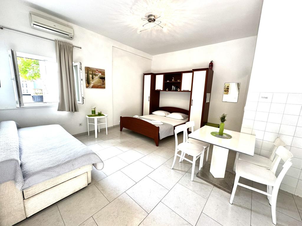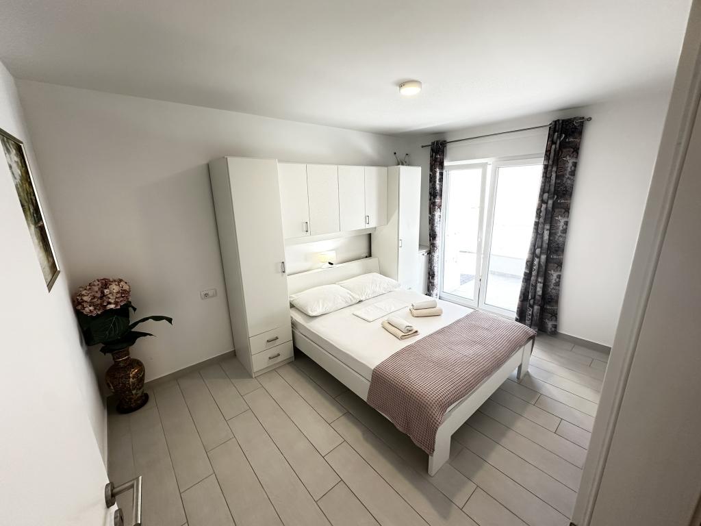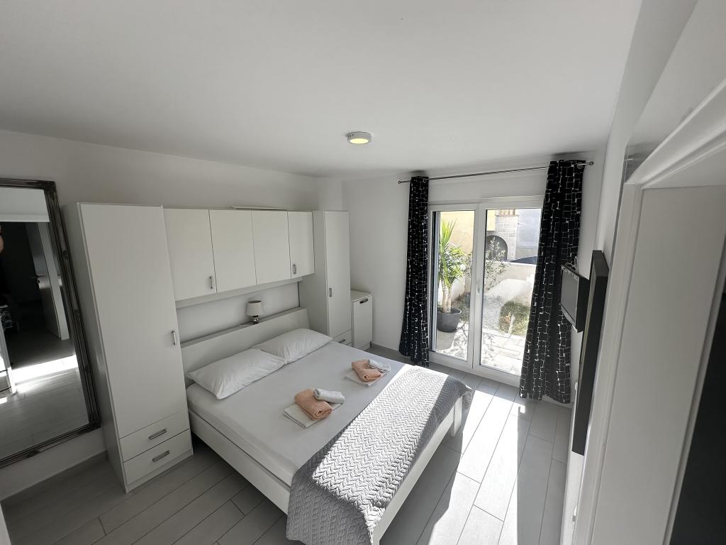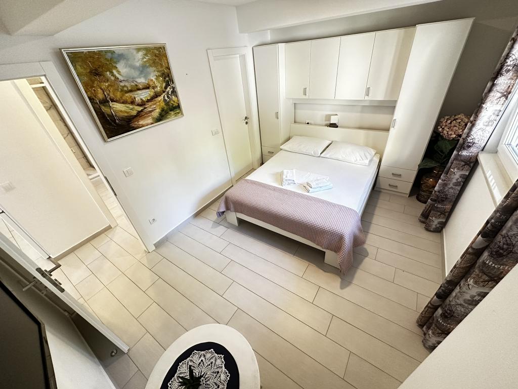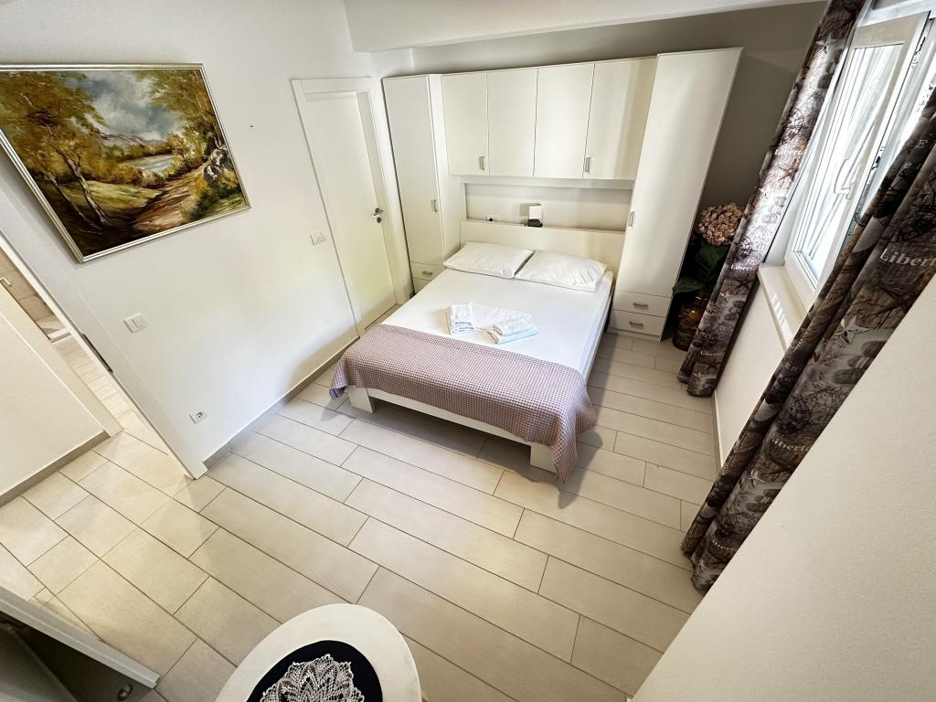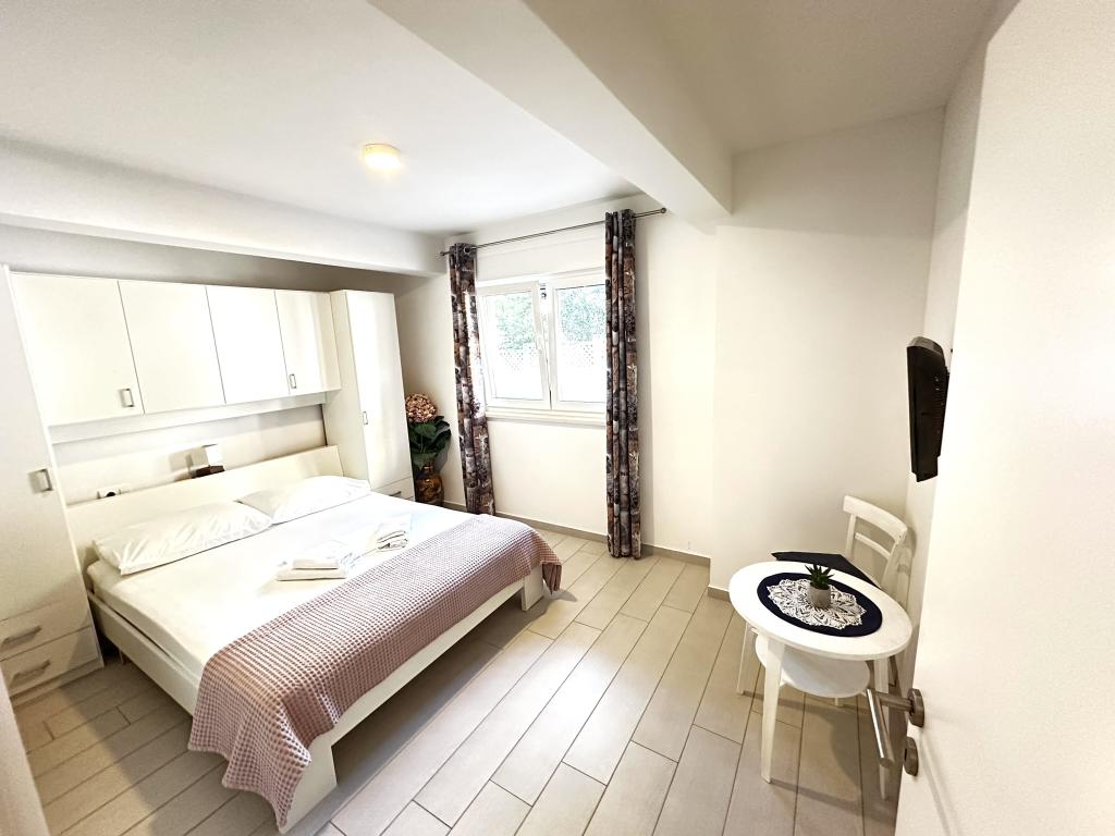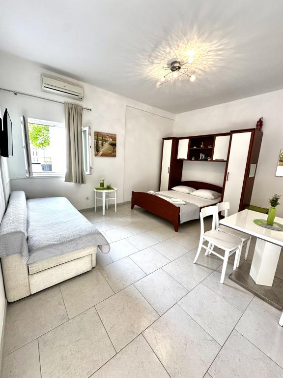 V ponudbi sta dva lepa dvosobna apartmaja, popolnoma opremljena in dve klimatizirani garsonjeri. Dvosobni apartmaji imajo dve sobi z zakonsko posteljo. Eden od apartmajev ima možnost namestitve dveh dodatnih oseb na kavču. Studia imata zakonsko posteljo in raztegljiv kavč in sta primerna za družino z največ 4 osebami, od tega sta 2 otroka. Vse kopalnice v dvosobnih apartmajih so opremljene s tušem, vsebujejo pa tudi pralne stroje in sušilce za lase. Kuhinje so popolnoma opremljene. Vsebujejo pečico, mikrovalovno pečico, hladilnik, pomivalni stroj in grelnik za vodo. Seveda smo poskrbeli tudi za vse kuhinjske pripomočke, ki jih potrebujete. Studio ima kopalnico s tušem, opremljeno kuhinjo z mikrovalovno pečico, štedilnikom in hladilnikom. Nahajajo se 300 metrov od morja v Promajni in imajo brezplačen WiFi ter klimatsko napravo. V stavbi je na voljo brezplačno zasebno parkirišče.