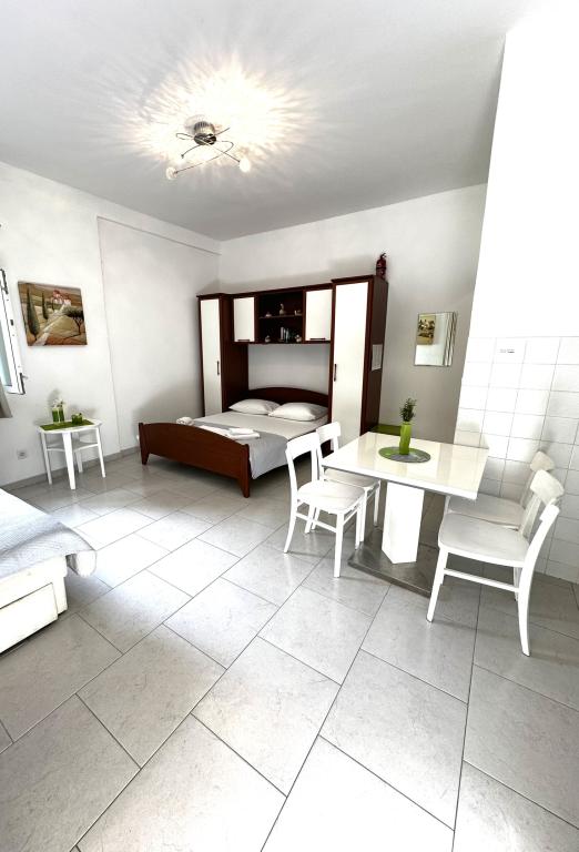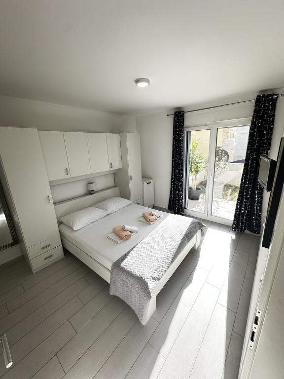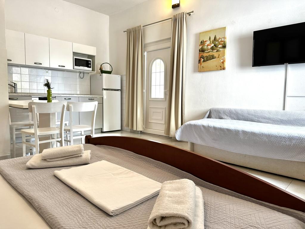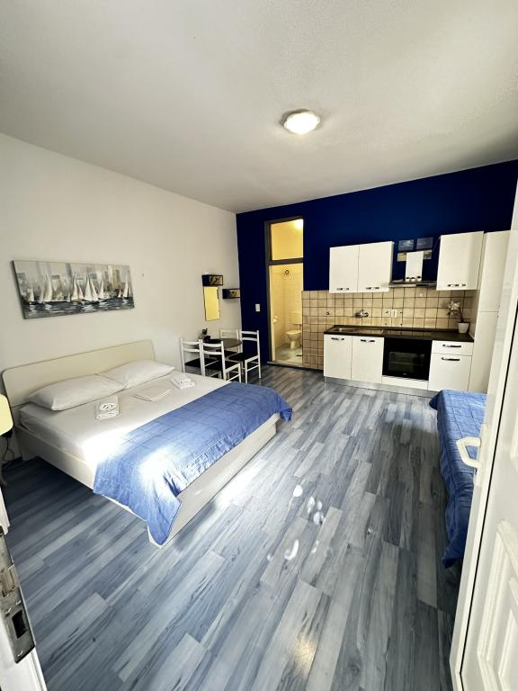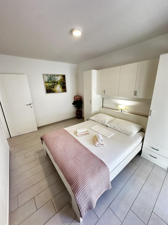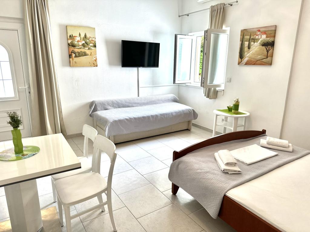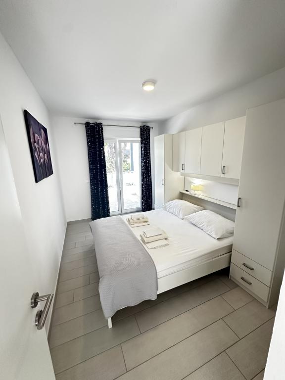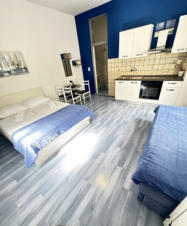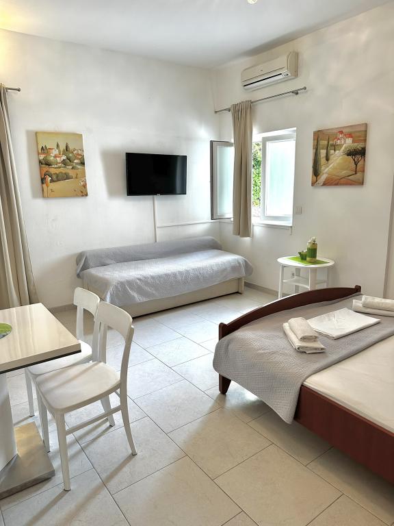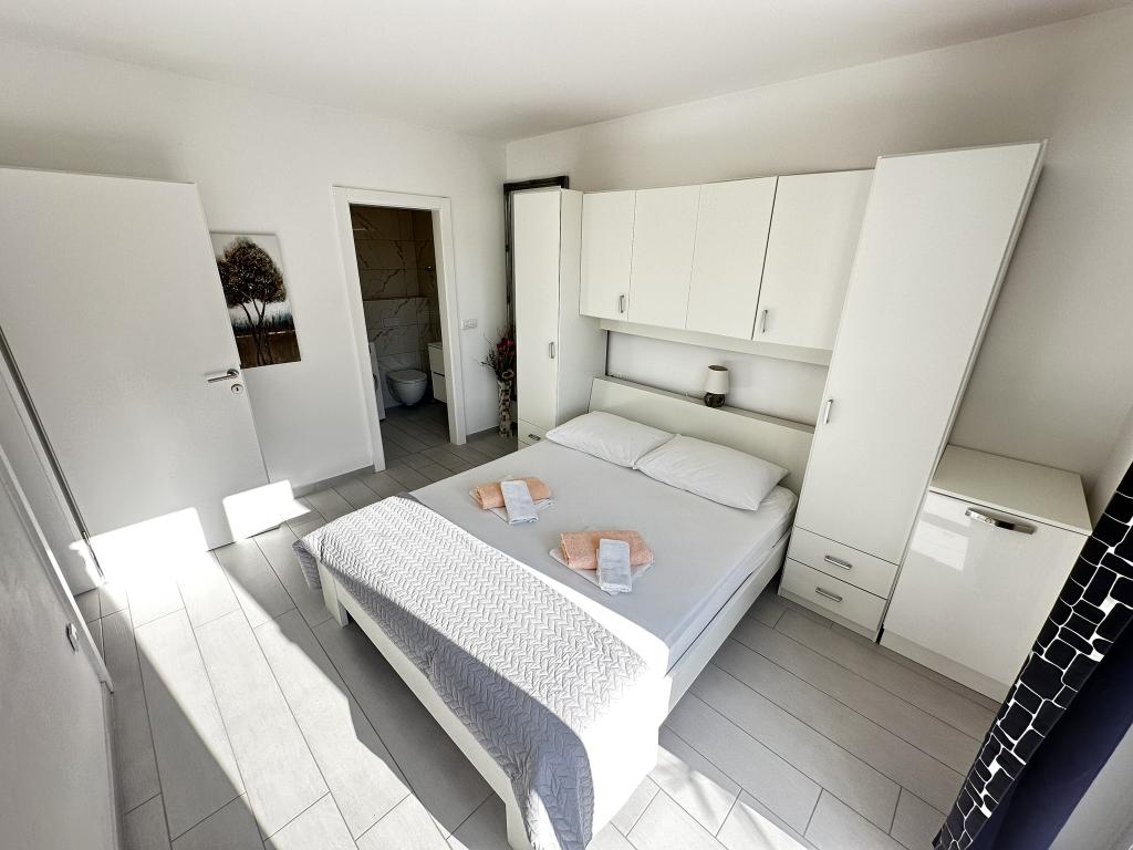 V ponudbi sta dva lepa dvosobna apartmaja, popolnoma opremljena in dve klimatizirani garsonjeri. Dvosobni apartmaji imajo dve sobi z zakonsko posteljo. Eden od apartmajev ima možnost namestitve dveh dodatnih oseb na kavču. Studia imata zakonsko posteljo in raztegljiv kavč in sta primerna za družino z največ 4 osebami, od tega sta 2 otroka. Vse kopalnice v dvosobnih apartmajih so opremljene s tušem, vsebujejo pa tudi pralne stroje in sušilce za lase. Kuhinje so popolnoma opremljene. Vsebujejo pečico, mikrovalovno pečico, hladilnik, pomivalni stroj in grelnik za vodo. Seveda smo poskrbeli tudi za vse kuhinjske pripomočke, ki jih potrebujete. Studio ima kopalnico s tušem, opremljeno kuhinjo z mikrovalovno pečico, štedilnikom in hladilnikom. Nahajajo se 300 metrov od morja v Promajni in imajo brezplačen WiFi ter klimatsko napravo. V stavbi je na voljo brezplačno zasebno parkirišče.