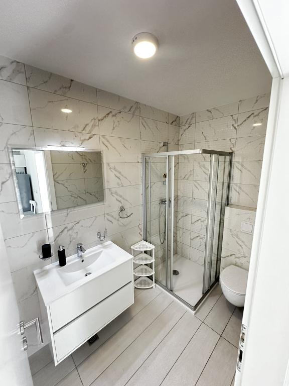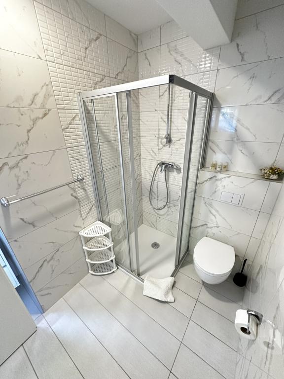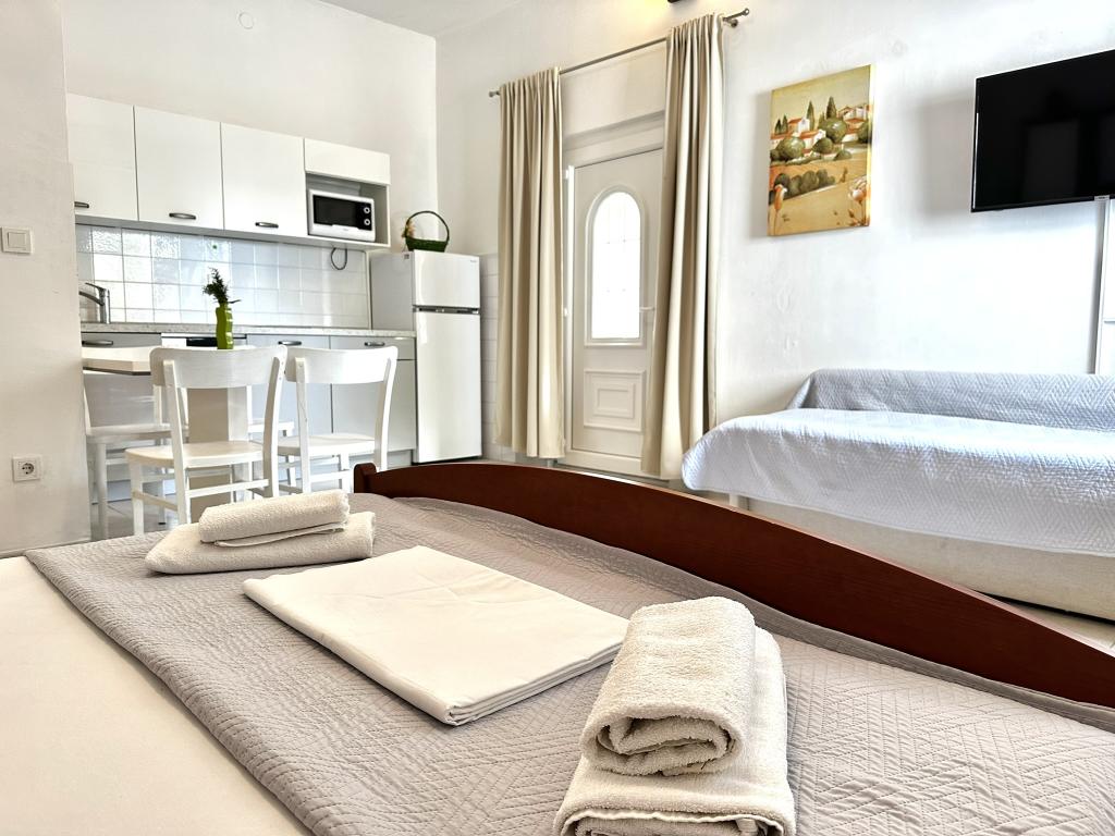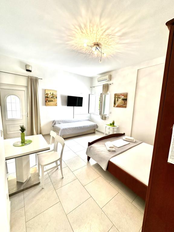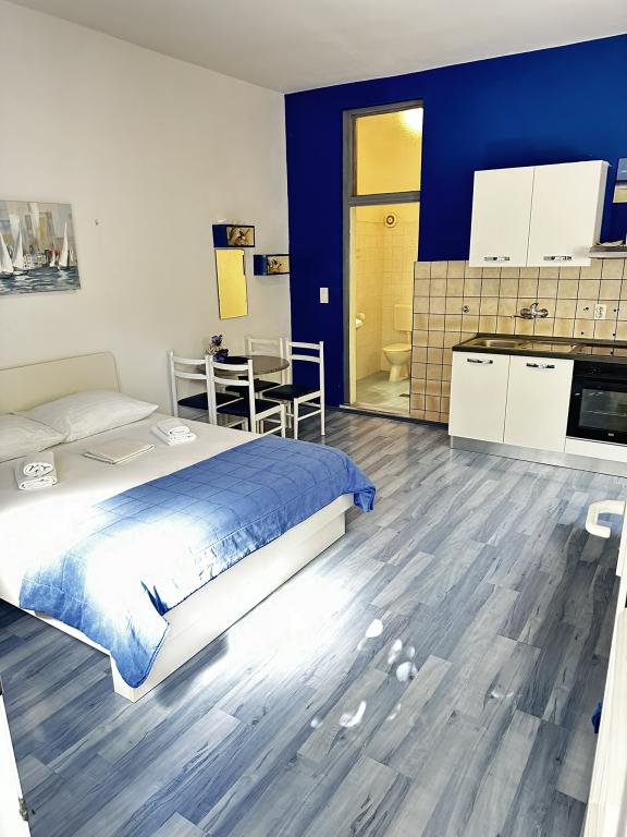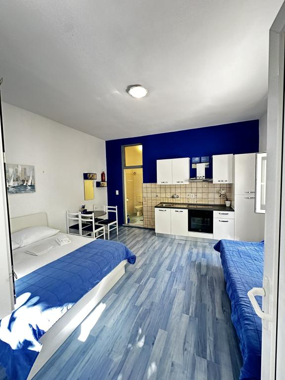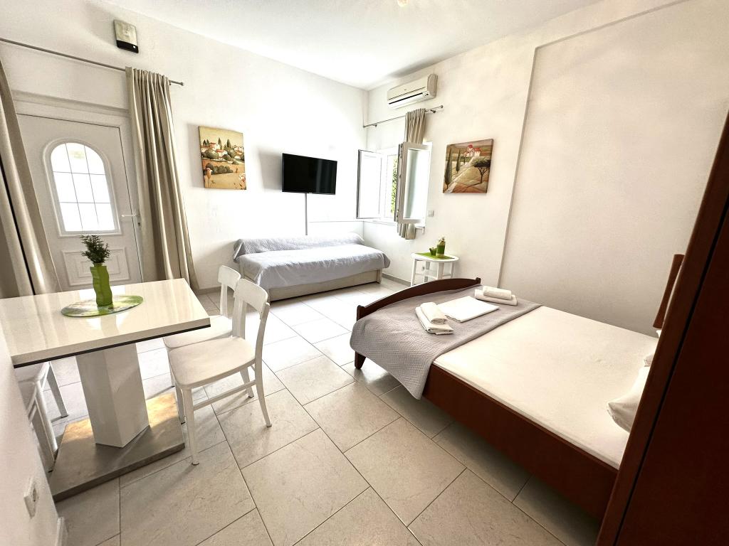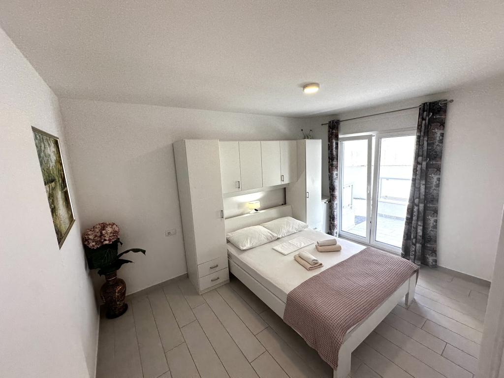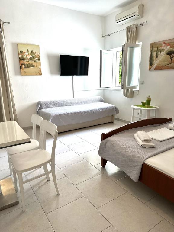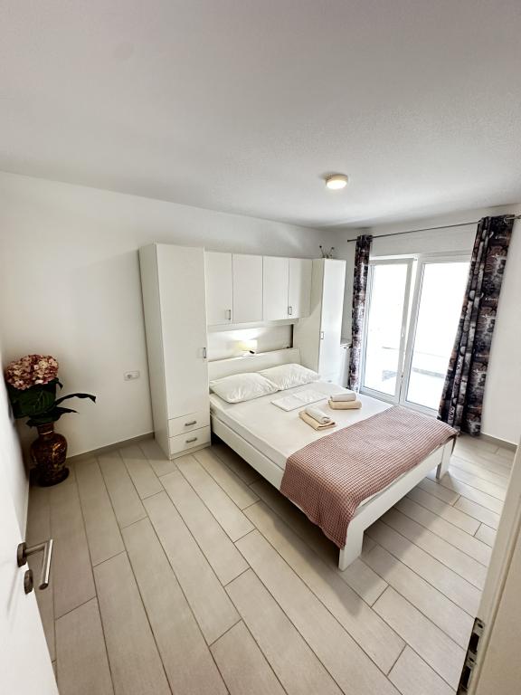 V ponudbi sta dva lepa dvosobna apartmaja, popolnoma opremljena in dve klimatizirani garsonjeri. Dvosobni apartmaji imajo dve sobi z zakonsko posteljo. Eden od apartmajev ima možnost namestitve dveh dodatnih oseb na kavču. Studia imata zakonsko posteljo in raztegljiv kavč in sta primerna za družino z največ 4 osebami, od tega sta 2 otroka. Vse kopalnice v dvosobnih apartmajih so opremljene s tušem, vsebujejo pa tudi pralne stroje in sušilce za lase. Kuhinje so popolnoma opremljene. Vsebujejo pečico, mikrovalovno pečico, hladilnik, pomivalni stroj in grelnik za vodo. Seveda smo poskrbeli tudi za vse kuhinjske pripomočke, ki jih potrebujete. Studio ima kopalnico s tušem, opremljeno kuhinjo z mikrovalovno pečico, štedilnikom in hladilnikom. Nahajajo se 300 metrov od morja v Promajni in imajo brezplačen WiFi ter klimatsko napravo. V stavbi je na voljo brezplačno zasebno parkirišče.