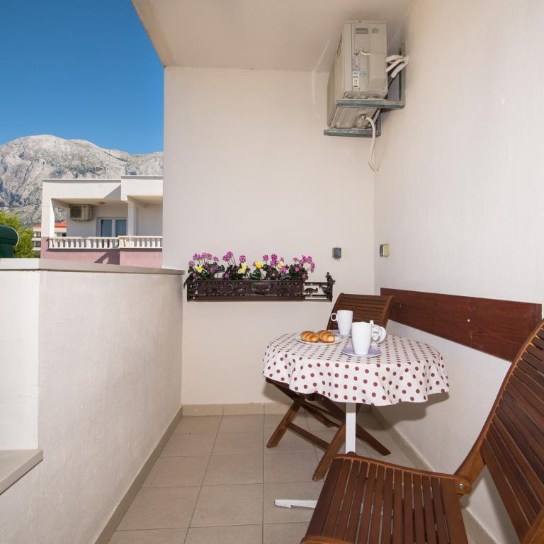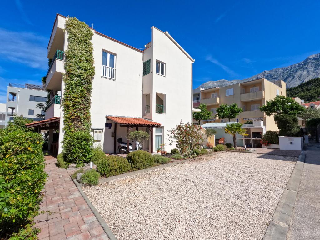 Popolnoma opremljeni apartmaji, ki se nahajajo 2 min hoje od plaže. V objektu je 6 nastanitvenih enot. Pred stavbo je parkirišče. Parkirišče ni pokrito in ni zaščite pred soncem. Možnost uporabe žara pred hišo. Plaža, restavracija, trgovina, tržnica, vse kar potrebujete za brezskrbne počitnice, manj kot 100m od hiše. Za dodatne športne aktivnosti, kulturne lepote, lepote narave obiščite Makarsko (6km) in Split (64km) in se prepričajte, da je Dalmacija eden izmed najlepših krajev, kamor se boste zagotovo želeli vrniti.