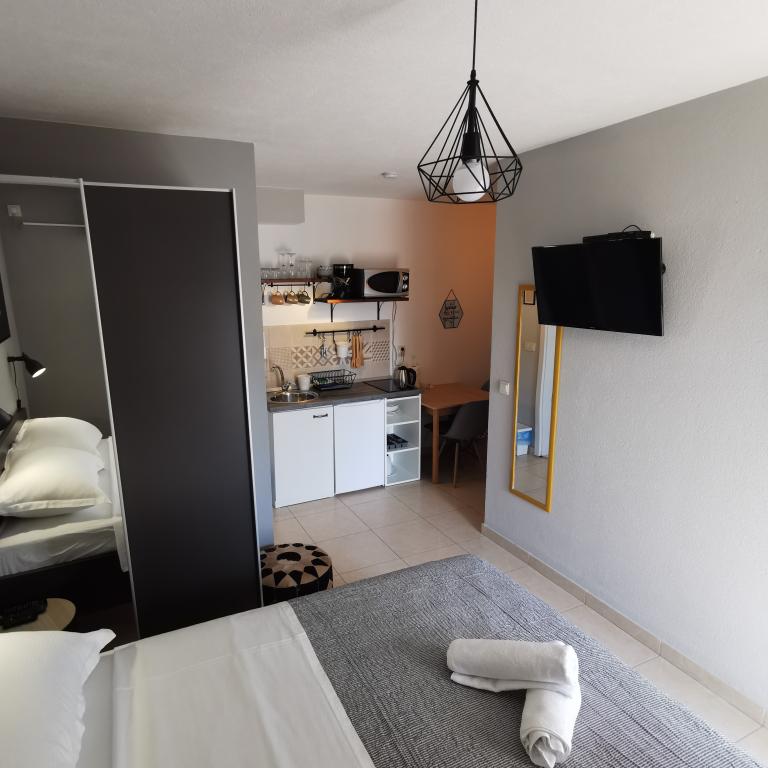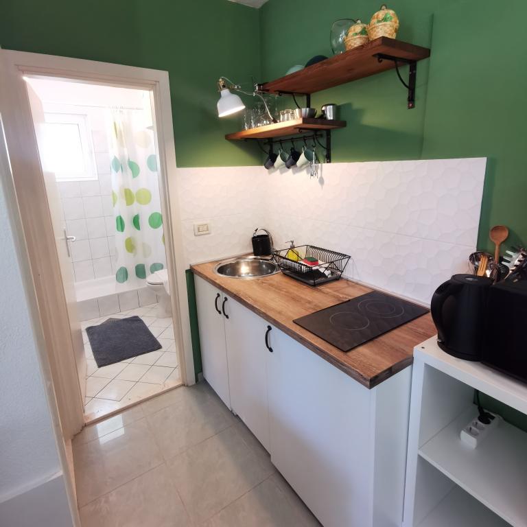 Zelo priporočam GOGA Apartmani. GARSONJERA: Zelo čista in urejena soba s kuhinjo in kopalnico. Visok standard končne obdelave. Popolnoma opremljena kuhinja. In kar je najpomembneje, zelo prijazen lastnik Luke, ki je vedno na voljo za pomoč v primeru težav. Še enkrat hvala za vaše bivanje in upam, da se vidimo v prihodnosti! Ocena 11/10