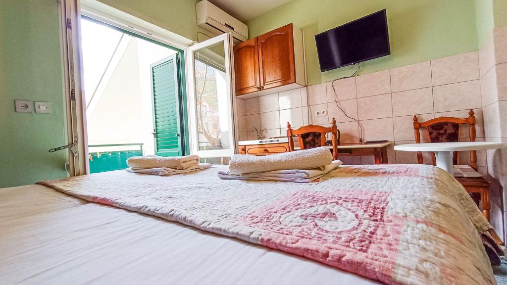 Bivalna enota, ki smo jo prejeli, ni bila očiščena pred našim prihodom, pajčevina in prah na vseh stenah. Pohištvo je staro in dotrajano. V objektu ni WiFi-ja, čeprav je navedeno, da obstaja. Satelitske televizije ni, čeprav je navedeno, da imajo satelitske kanale. Imeli smo 10 domačih kanalov, z motnjami, tako da tudi njih nismo mogli gledati. Klimatska naprava ne deluje, to pomeni, da je zmogljivost hlajenja minimalna. Parkirišče je zagotovljeno, vendar ni predvideno, da vozilo uporabljate med dopustom, ker drugi najemniki parkirajo za vami, tako da vi ne morete parkirati. Skratka, za nekoga, ki je precej prilagodljiv, je to zadnja izbira za prihodnje počitnice ...