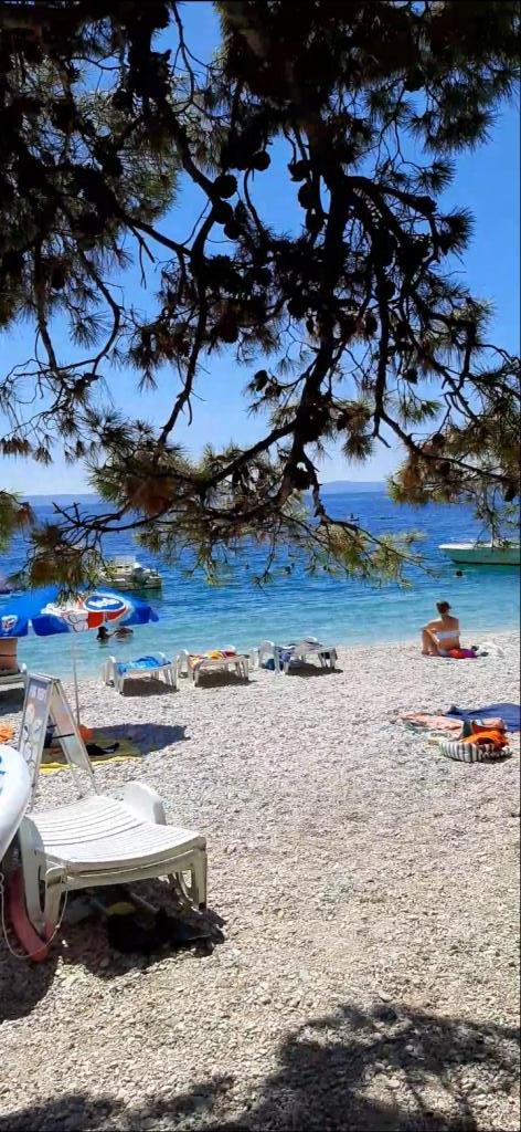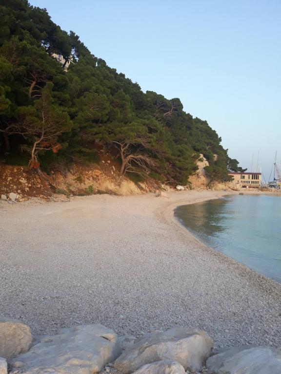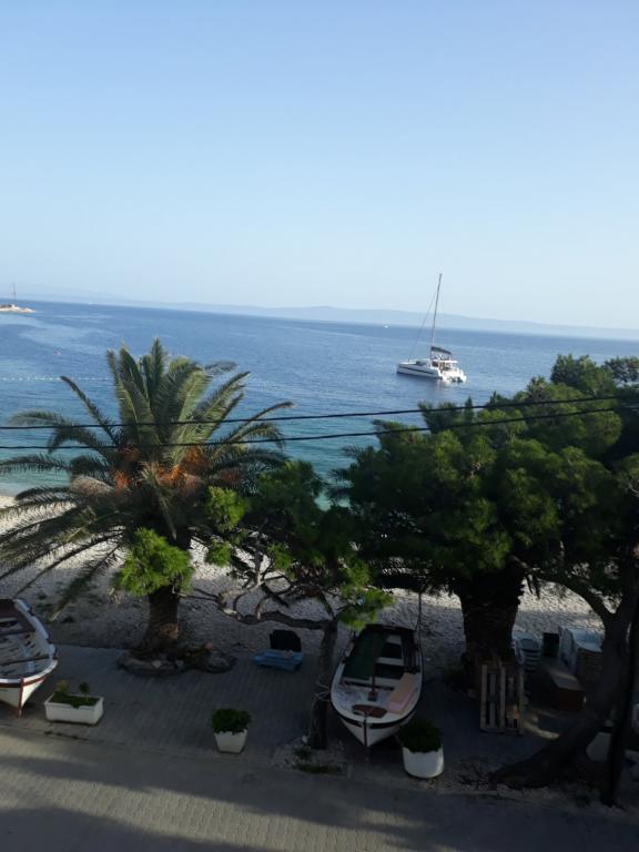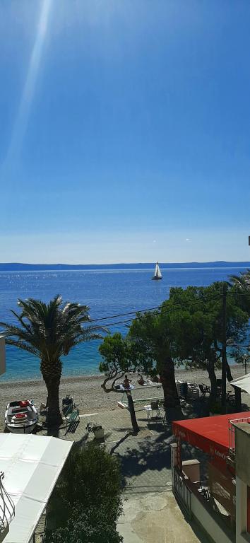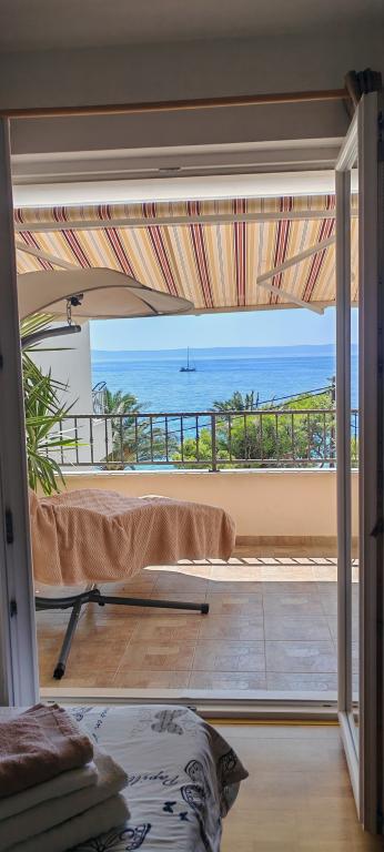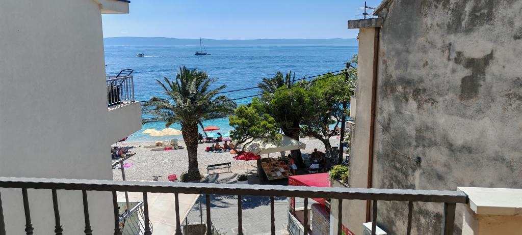 Odličen apartma z velikim balkonom in čudovitim pogledom na morje na mirnem mestu! Če ste za aktivne počitnice ali nočni sprehod, imate 1 km do Promajne, 4 km do Baške Vode in 5 km do Makarske.