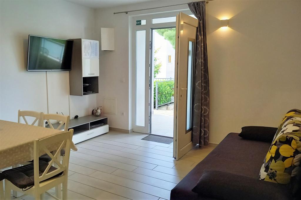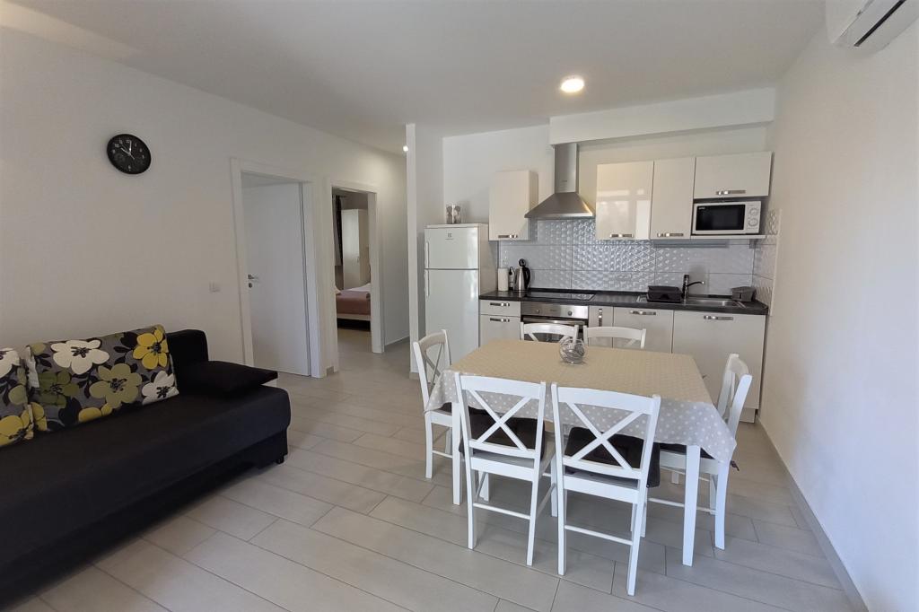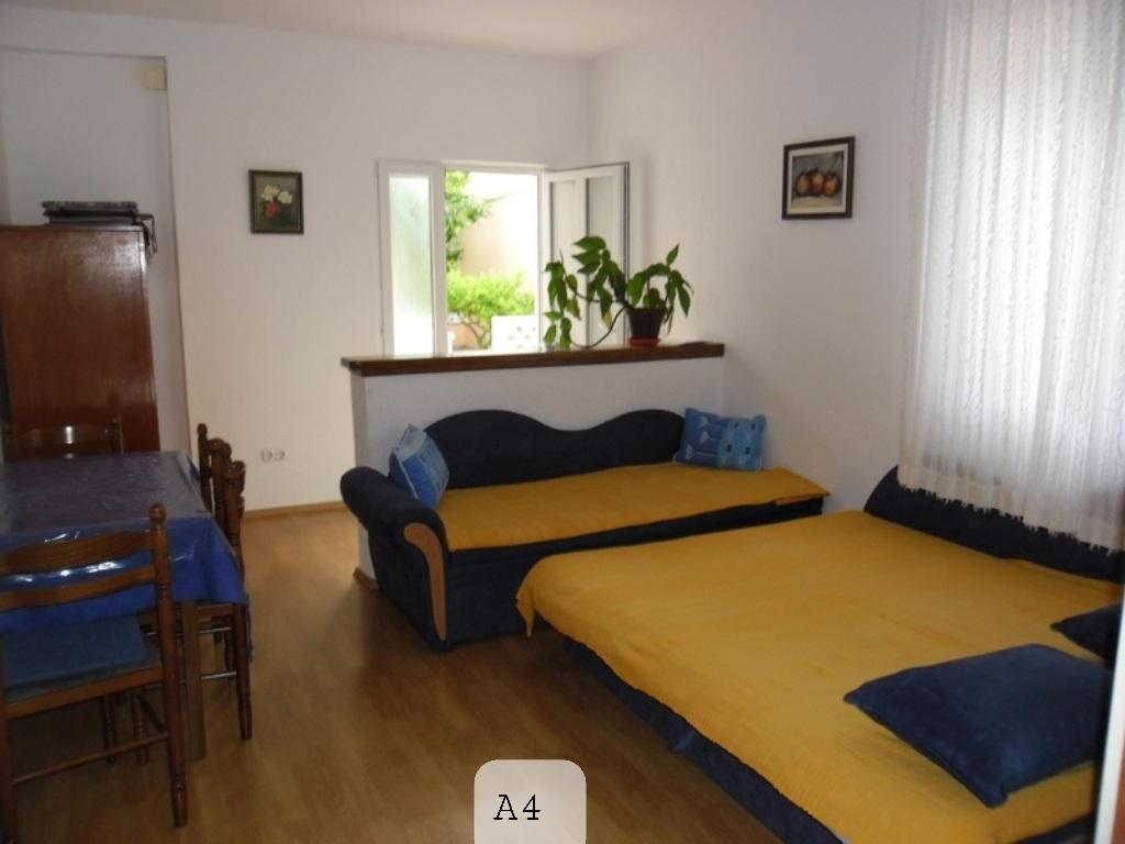 Apartmaji MIRA so sestavljeni iz 2 studio apartmajev (za 2-4 osebe) in 2 apartmajev (za 4-5 oseb). Nahajajo se v pritličju s parkiriščem pred apartmaji. Od glavne plaže so oddaljeni 250-300 m. Poleg standardne kompletne opreme s klimatsko napravo in brezplačnim WiFi-jem (optični dostop do interneta) imajo studio apartmaji še TV, mikrovalovno pečico, pralni in pomivalni stroj. Studio apartmaji imajo ločeno spalnico, ki je od dnevne sobe ločena z zaveso. Apartma A4 (ID71793) 2 spalnici, 1 kopalnica + WC. Apartma A4+1 (ID71792) ima 2 spalnici in 2 kopalnici. Poleg standardne opreme s klimatsko napravo imajo satelitsko televizijo, brezplačen WiFi (optični dostop do interneta), mikrovalovno pečico in pralni stroj. Vsi apartmaji in studio apartmaji imajo brezplačno parkirišče pred apartmaji. Cena apartmaja (A4+1) je navedena za 4 osebe, za dodatno osebo pa se doplača 10 evrov.