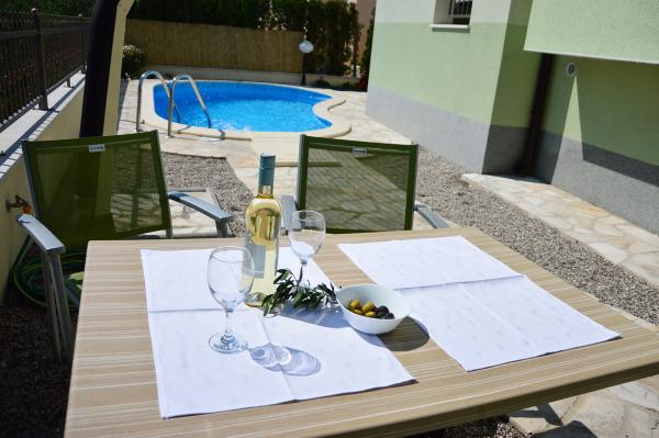 Bivali smo v apartmaju 2+2 v kleti. Vse je bilo lepo čisto, novo, popolnoma opremljeno. Povzpeli smo se po stopnicah in lahko skočili naravnost v bazen. Bazen je bil lep, čist. Gostiteljica je zelo prijazna. Morje je blizu, 3 minute hoje od hiše. Vse v 1*. Radi bi se vrnili sem!
