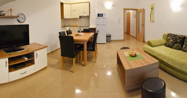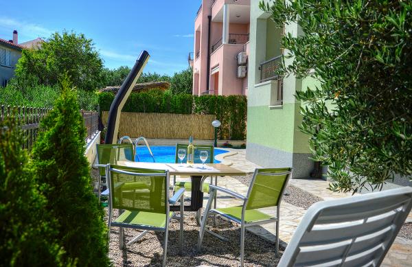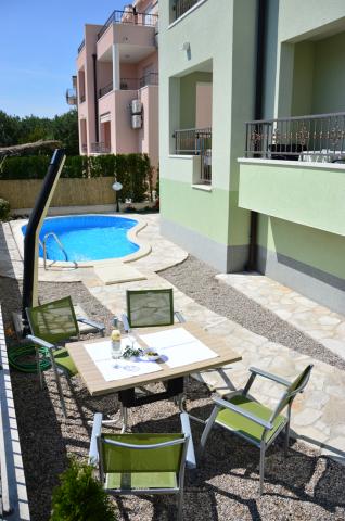 Vsi apartmaji so novi in luksuzno opremljeni. Ob hiši je bazen. Apartmaji so od plaže oddaljeni 60 metrov.