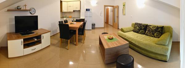 Turistična taksa je vključena v ceno.Namestitev je bila odlična, v apartmaju smo imeli vse, kar smo potrebovali za prijetno bivanje, in če smo kaj potrebovali, smo se lahko obrnili na prijazno gospodinjo. Vse je bilo čisto, urejeno in še lepše kot na fotografijah. Pogled na morje je bil božanski! Bazen je bil čist, voda topla in lahko smo plavali v prijetnem in zasebnem vzdušju. Gostitelji so zelo prijazni, postrežba na visokem nivoju. Vsa priporočila. Vračamo se!