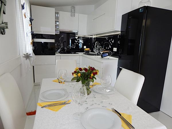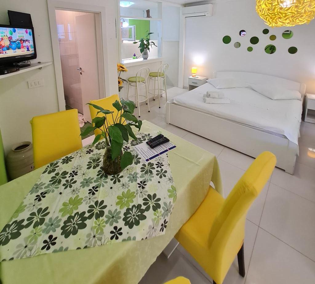 Že dvakrat na istem mestu in spet bomo prišli. Zelo lepo in čisto nastanitev. Morje za potapljanje samo spredaj, plaža za otroke v nekaj minutah. Lep in lep kraj, odlična povezava z avtoceste skozi nov tunel. Kety, lastnica je zelo prijazna in ustrežljiva. Apartmaji na vrhu imajo fantastičen pogled na morje.