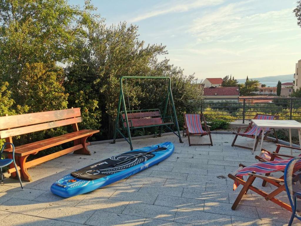 Vila ponuja namestitev v popolnoma opremljenih apartmajih za 2-6 oseb. Vsi apartmaji imajo popolnoma opremljeno kuhinjo, klimo, wifi, balkon s pogledom na morje, parkirni prostor pred hišo, brezplačno uporabo bazena, žara, vrta in terase na ograjenem dvorišču. Hišni ljubljenčki so dobrodošli proti doplačilu. Le nekaj minut hoje smo oddaljeni od čudovite glavne plaže, obdane z gostim borovcem. Večeri so rezervirani za sprehod po obmorski promenadi, ki se razteza 3 km vse do Baške Vode.