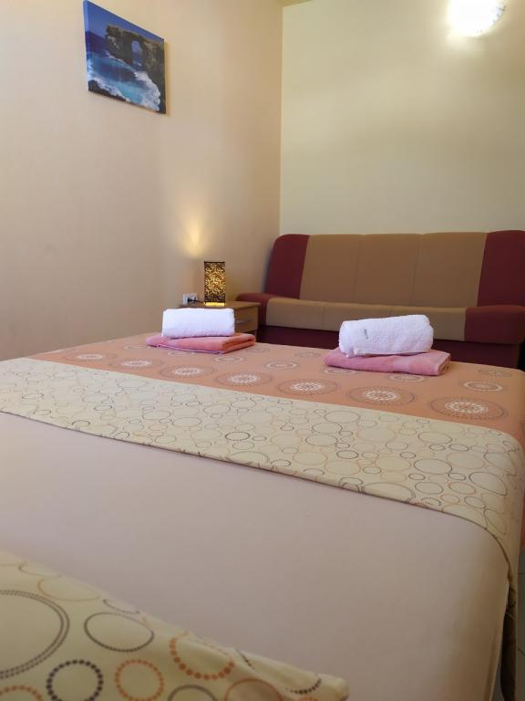 Lepi apartmaji s pogledom na morje in dostopom do bazena na zelo dobri lokaciji, blizu trgovin, plaž in restavracij. Če iščete majhno hrvaško mesto z odličnimi plažami, je to pravi kraj za vas. Naše stanovanje je imelo samo eno klimatsko napravo in je trajalo nekaj časa, da se je ohladilo, vendar je bilo obvladljivo. Več kosmičev za otroke in sušilec za lase bi bili v pomoč. Lastnik je na voljo in je vedno na voljo za pomoč.
