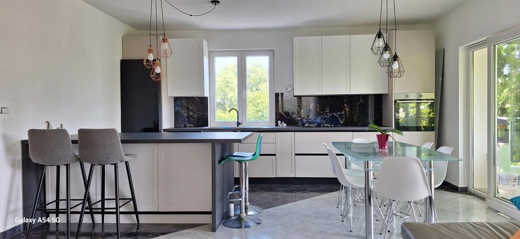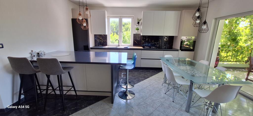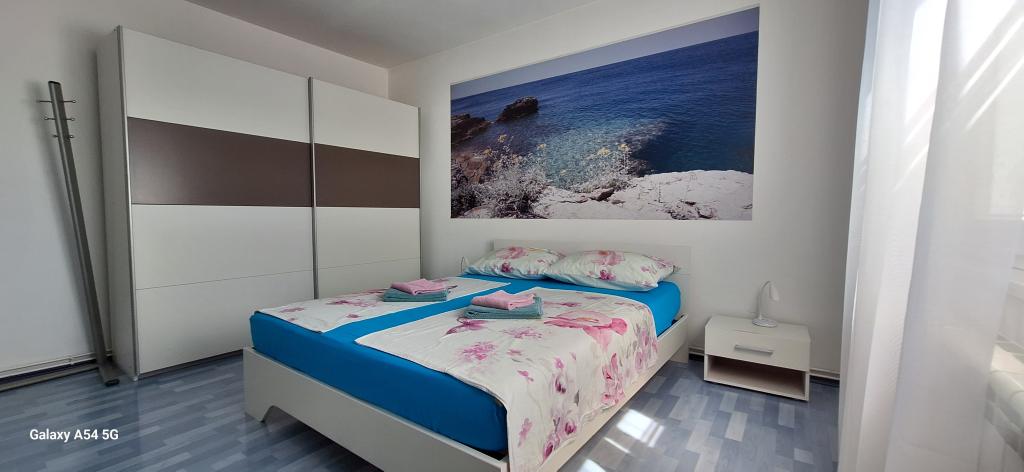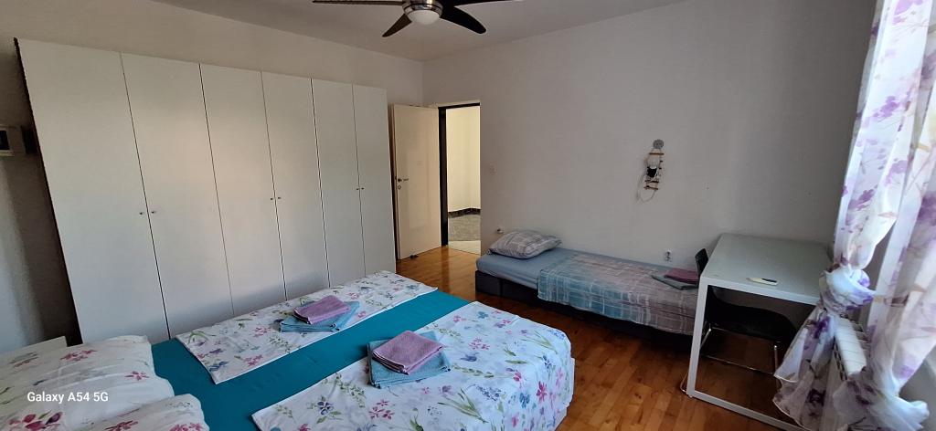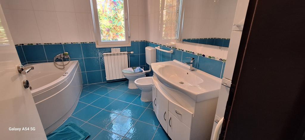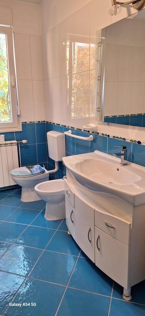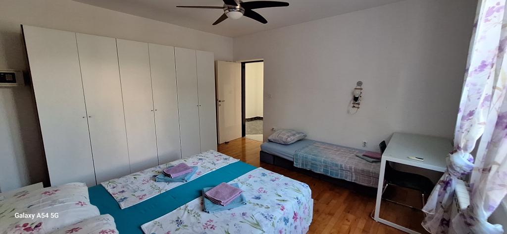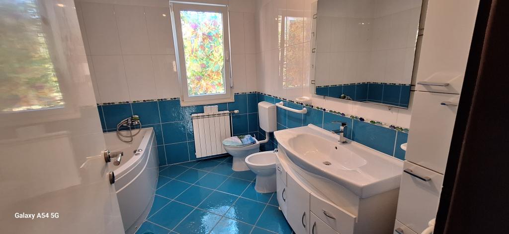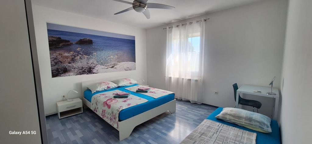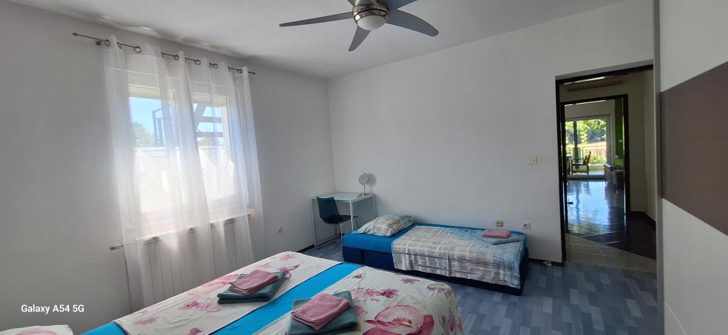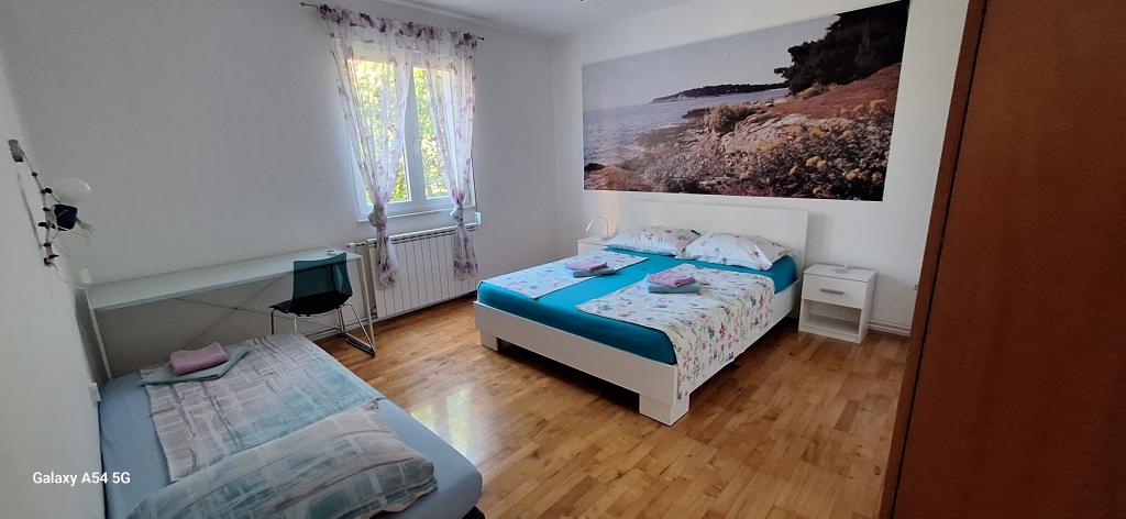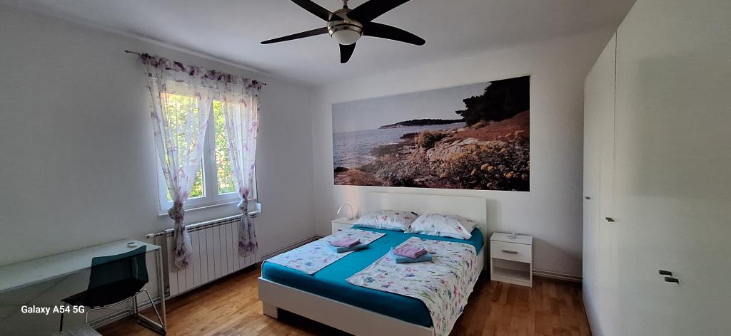 Odkrijte pravo razkošje v našem Art apartmaju v Pulju, ki se nahaja v čudoviti Istri. Ta prostoren apartma lahko sprejme do 6 gostov na 100 kvadratnih metrih bivalne površine. Sestavljen je iz 2 spalnic in 2 kopalnic, popolnoma zasnovanih za vaše udobje in sprostitev. Pritličje hiše meri 100 m2 + 29 m2 balkona + 600 m2 dvorišča s trampolinom. Gostje imajo dostop do kuhinje, jedilnice, dnevne sobe, hodnika, 2 spalnic z zakonsko posteljo + dodatnim ležiščem v vsaki sobi. Velika kopalnica s kadjo. Majhna kopalnica s tušem. Velika terasa velikosti 20 m2. Pogled proti gozdu.