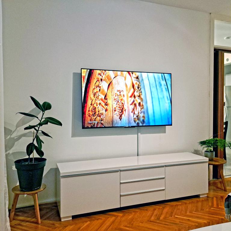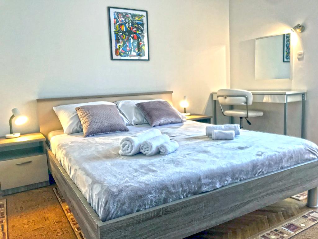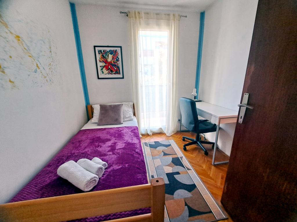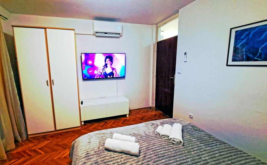Udobno, moderno opremljeno stanovanje v mirnem delu centra Pulja — odlična izbira za pare, družine do 5 oseb ali poslovne potnike. Stanovanje ima dve spalnici (dvoposteljno, klimatizirano in enoposteljno), klimatizirano dnevno sobo z delovnim kotičkom in raztegljivim kavčem, ki se po potrebi lahko spremeni v posteljo za dve osebi. Na voljo so popolnoma opremljena kuhinja, jedilnica, kopalnica s kadjo, dodatno stranišče in balkon s pogledom na park. Stanovanje ima tri pametne televizorje (50", 43" in 55") in hiter optični internet z možnostjo žične povezave. Mestna tržnica in staro mestno jedro sta oddaljena le 5 minut hoje, morje pa manj kot 2 km. Parkiranje je na voljo pred stavbo. Tukaj boste našli idealno kombinacijo udobja, sodobne opreme in vrhunske lokacije za brezskrbno bivanje in raziskovanje Pulja.