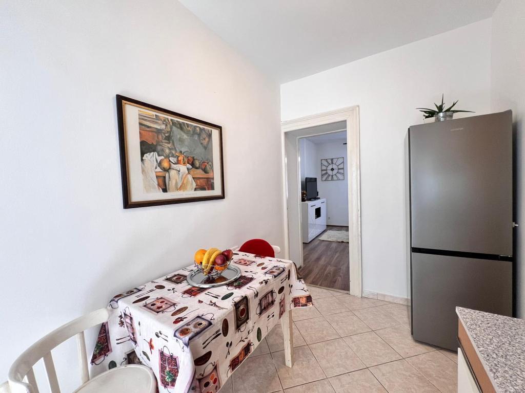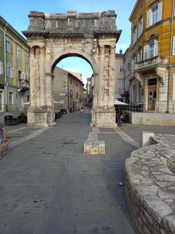 Apartma se nahaja v središču Pulja, v bližini Arene, v stanovanjski stavbi v 2. nadstropju. Prenovljena je bila leta 2024. V celoti je opremljena z vsemi potrebnimi udobji za prijetno bivanje. Sestavljen je iz sobe (zakonska postelja, omara z ogledalom, komoda, omarica za čevlje, TV, likalnik, 2 stola, posteljnina, odeja in brisače); kuhinje (kuhinjske omarice, štedilnik, velik hladilnik, miza, stoli, klimatska naprava, mikrovalovna pečica, grelnik vode, aparat za kavo, opekač kruha, posoda); kopalnice (stranišče, tuš, pralni stroj, umivalnik z ogledalom, električni stenski grelec). Ker je v središču mesta, so dostopne vse mestne ugodnosti. V soseski so pekarna, hitra prehrana, trgovina z živili, kavarna Rock, frizerski salon in salon za nego hišnih ljubljenčkov. Hišni ljubljenčki so dovoljeni, vendar morate skrbeti za njihovo higieno.