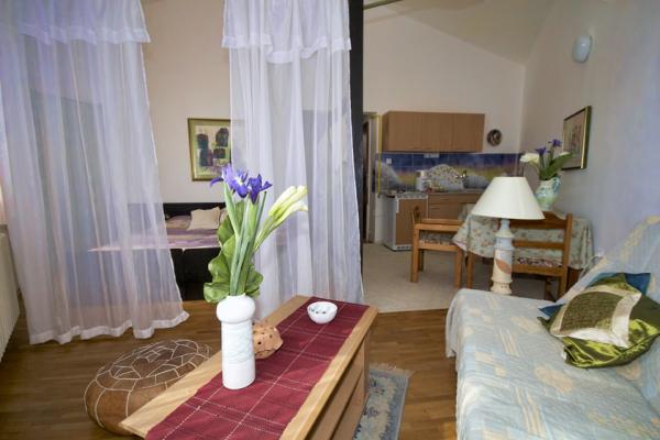 Funkcionalne in popolnoma opremljeni apartmaji z umetniškim dekor. Idealno za pare ali manjše družine. Blizu plaže 5 min peš. Stanovanjsko območje Puli. Pekarna, trgovine, marina, restavracije blizu.