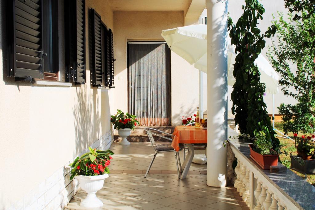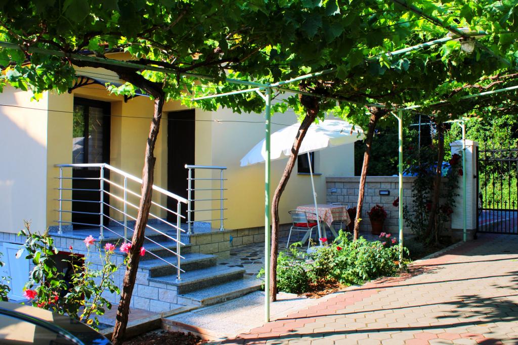 Družinska hiša, ki ima dva apartmaja za najemanje, enega za 4-5 ljudi in enega za dva. Oba apartmaja se nahajata v pritličju. Apartma za 4-5 oseb je prostoren, svetel in udoben z dvema spalnicama, kuhinjo, jedilnico, dnevno sobo, kopalnico in teraso. Stanovanje je klimatizirano, ima wifi in vse gospodinjske aparate. Gostje lahko uživajo na terasi s pogledom na vrt in dvorišče ter uporabljajo žar. Apartma za dve osebi ima zakonsko posteljo, kuhinjo, kopalnico in teraso. V idealnem primeru se nahaja 3 minute vožnje z avtomobilom do parkirišča v centru mesta in 3 minute vožnje z avtomobilom do plaže. Hišni ljubljenčki niso dovoljeni.
