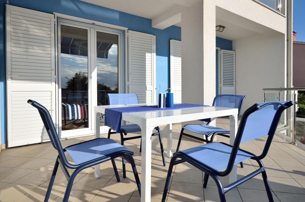 Ponujamo vam 5 luksuzno opremljenih apartmajev, ki se nahajajo v turističnem kraju Štinjan, nedaleč od mesta Pulj in Narodnega parka Brioni. Nahajajo se 500 m od morja, 500 m od centra Stinjana, 7 km od centra Pulja, 11 km od letališča Pula, 100 m od avtobusne postaje. Vsak apartma ima kuhinjo v dnevni sobi, spalnico, teraso, kopalnico, klimo, TV/SAT, brezžični internet, žar, parkirno mesto. Apartma 5 je studio.