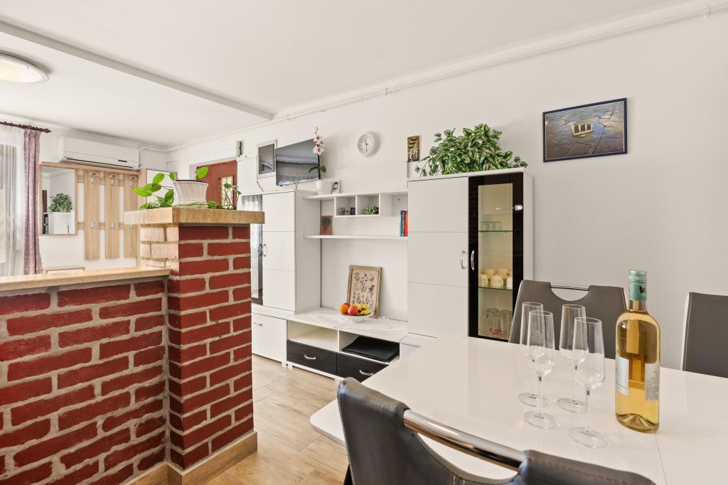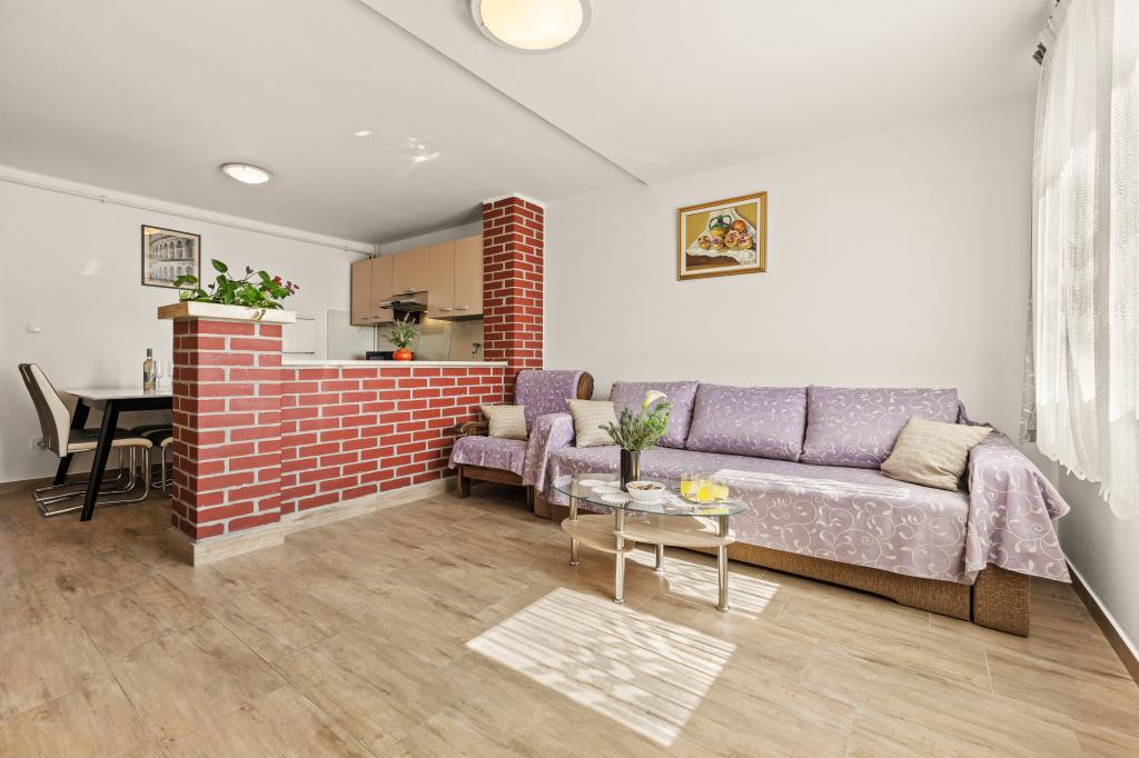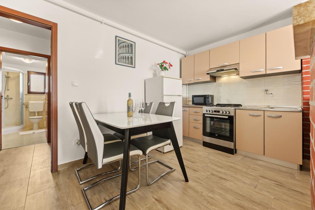 V mirnem delu Pulja se nahajajo odlično locirani apartmaji v bližini morja in turističnih središč ter v hoje oddaljenosti od starega mestnega jedra. Urejeni in udobni apartmaji imajo vse, kar potrebujete za miren in sproščujoč dopust. Vsak apartma ima svojo teraso. Bližina postaje javnega prevoza vam omogoča, da se izognete gneči in lažje premikate brez uporabe osebnega avtomobila, za katerega je zagotovljeno brezplačno parkirno mesto. Za vsa vprašanja smo vam na voljo. Veselimo se vašega prihoda!