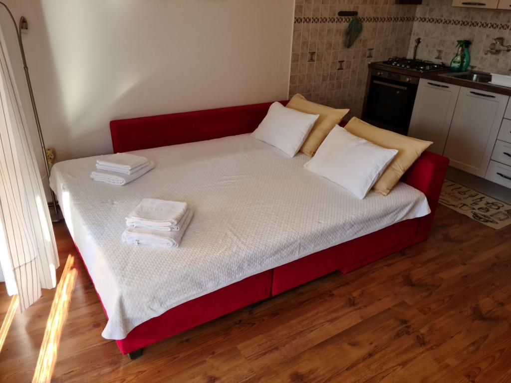 Spoštovani gostje, Vabljeni v moje gospodinjstvo in v teh nenavadnih okoliščinah. Potujte vestno. Apartmaji Smiljka se nahajajo v turističnem naselju le nekaj kilometrov od centra Pule in 3 ure hoje od prodnate plaže. Apartmaji so opremljeni z vsem, kar potrebujete za udobne počitnice. Apartmaji so še posebej primerni za družine z otroki zaradi bližine plaže, pa tudi mirne lege znotraj letovišča. Primerni so tudi za dve poletni družini skupaj, Ker sta v objektu le dva apartmaja (vsak ima ločen vhod), imate optimalno sposobnost vzdrževanja socialne oddaljenosti.