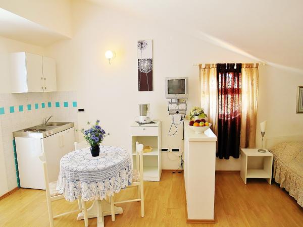 Apartmaji Villa Udovičić se nahajajo nedaleč od naravno raznolikih plaž. Ponuja 6 udobno opremljenih apartmajev s čudovitim pogledom in nekaj s pogledom na morje. Apartmaji imajo eno ali dve ločeni spalnici, dnevno sobo, sodobno kuhinjo, kopalnico, SAT TV in teraso. Apartmaji so klimatizirani; možnost uporabe interneta in parkiranja. Nedaleč od stanovanja so sprehajališča skozi gozdni park, ob morju, marina, restavracije in fitnes na prostem. V vasi je več manjših trgovin.