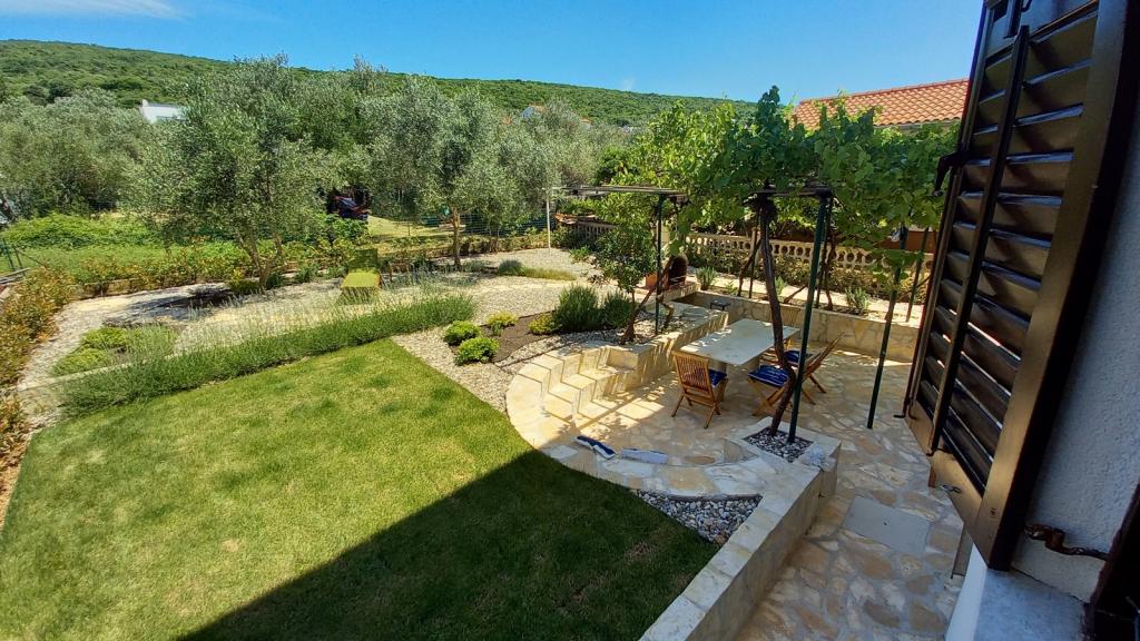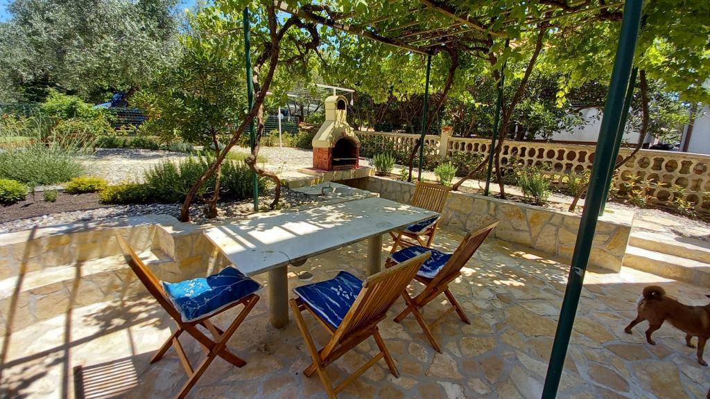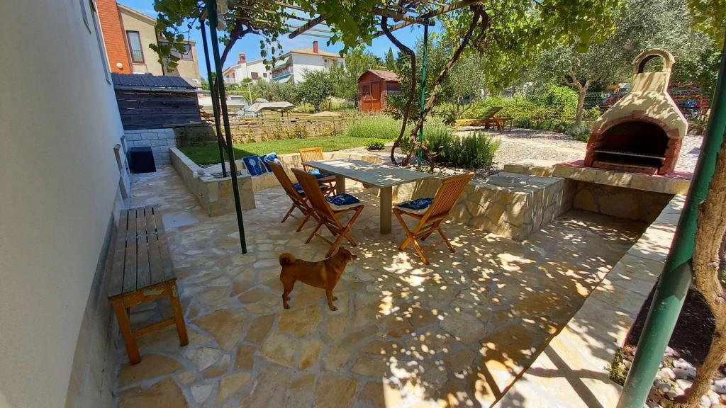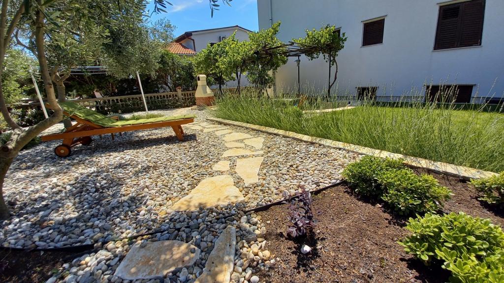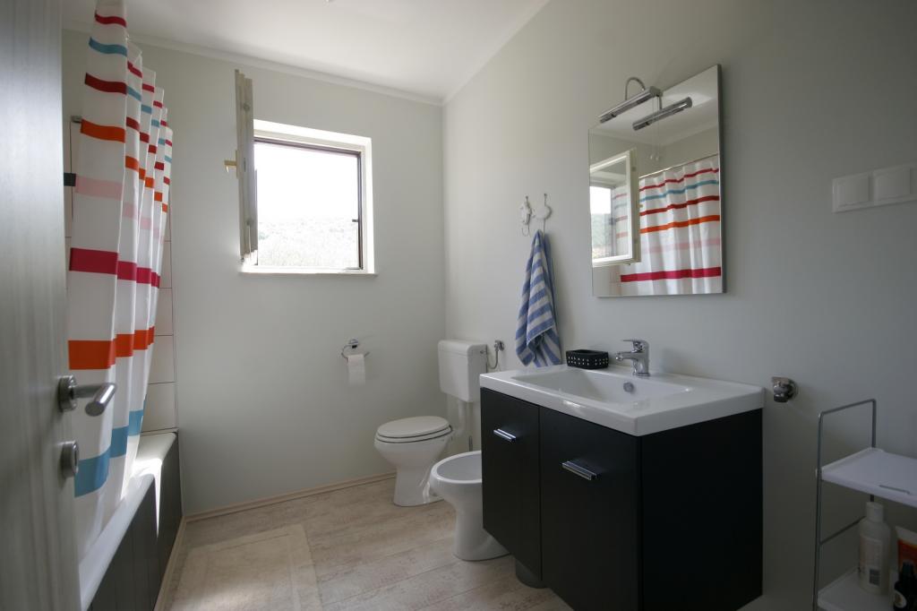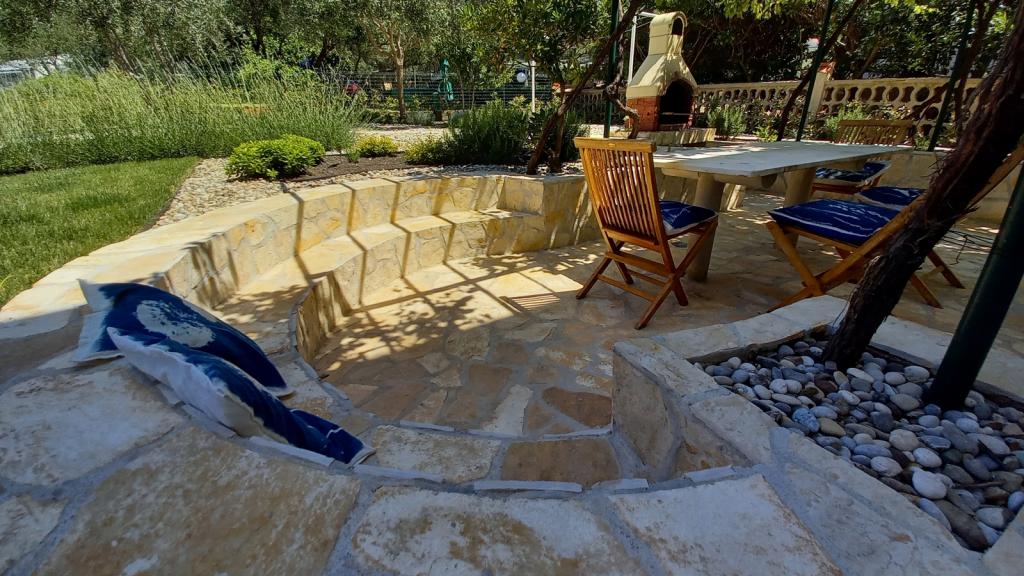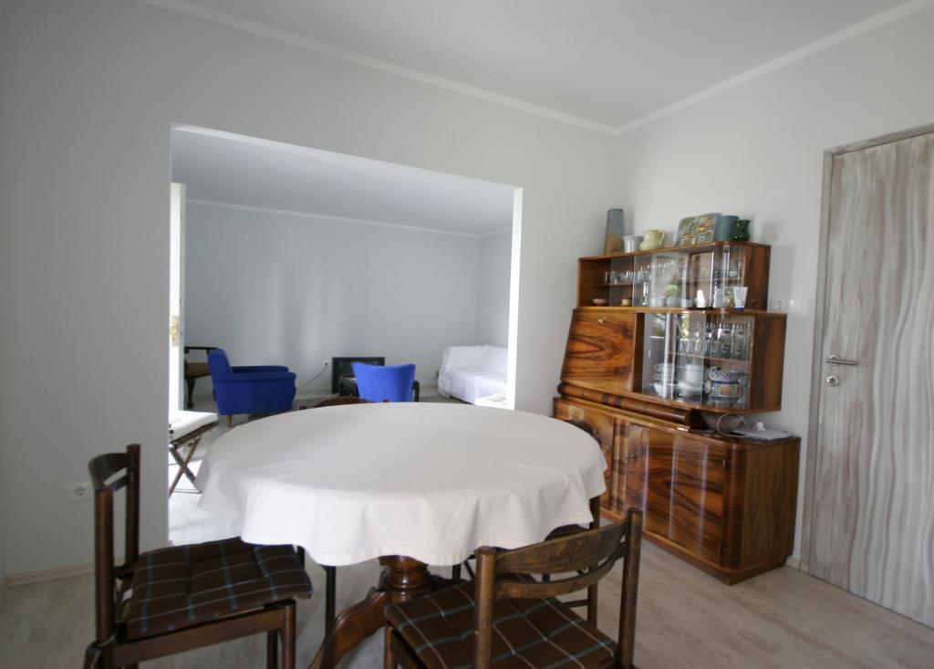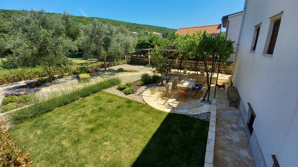 Novo prenovljeno, prostorno stanovanje velikosti 100m2 se nahaja v prvem nadstropju družinske hiše. Sestavljen je iz 2 spalnic, 2 kopalnic, kuhinje z jedilnico in prostorne dnevne sobe, kjer je kavč mogoče raztegniti v dodatno ležišče. Iz kuhinje in dnevne sobe je izhod na velik balkon-ložo. Na zadnji strani hiše je na novo obnovljen vrt z žarom in ležalniki ter sončno prho. V bližini apartmaja je supermarket, morje pa je približno 500 m oddaljeno od centra Punata in 10 minut hoje.