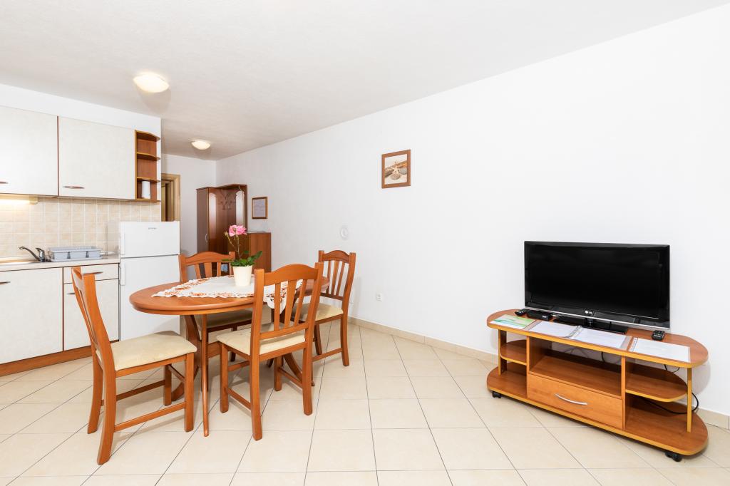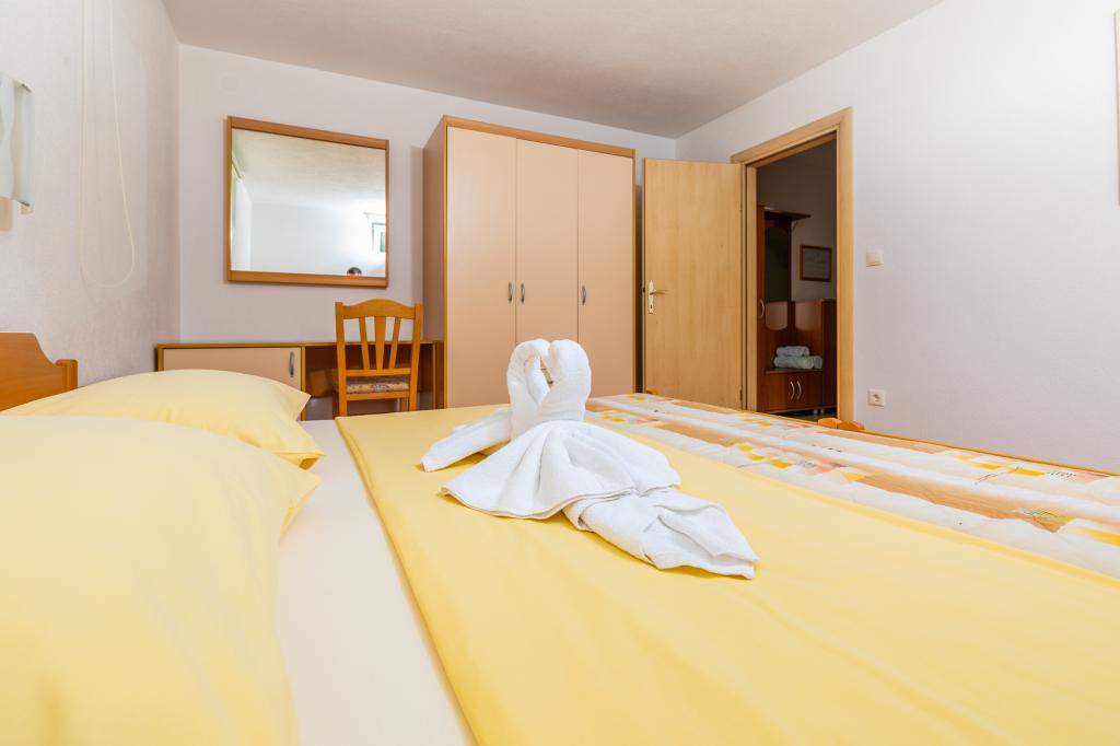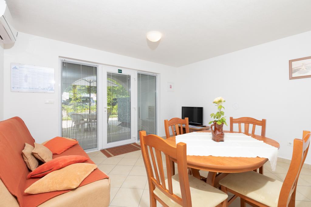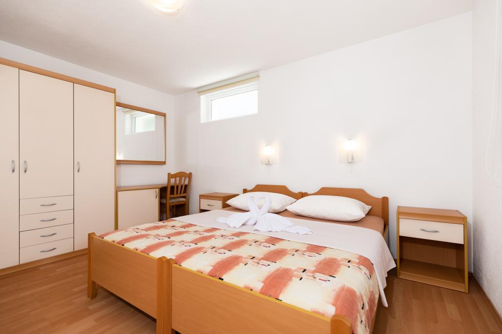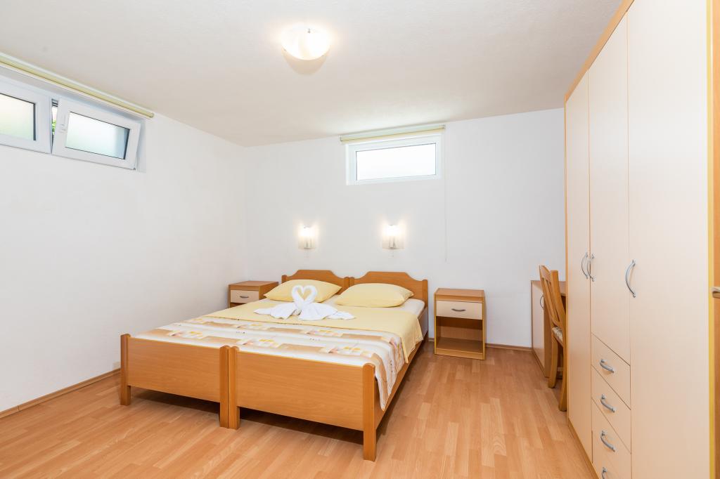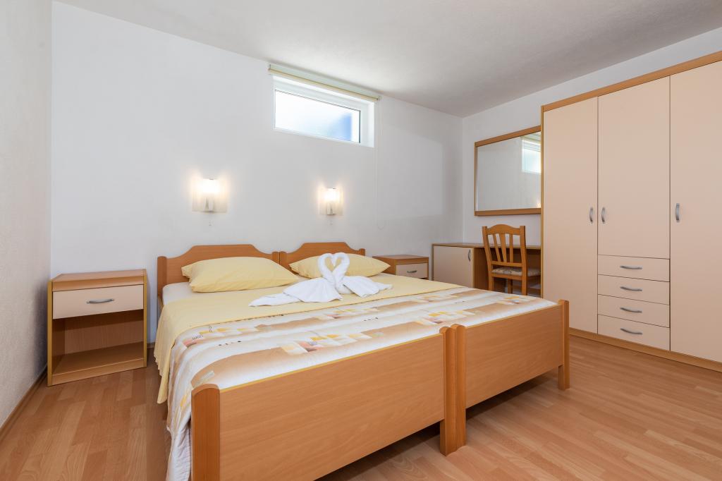 Namestitvene enoteZa rezervacijo je potrebno vplačati akontacijo 100€ preko banke (IBAN), preostanek računa pa plačate v gotovini ob prihodu. Prihod v apartma je možen po 14. uri, odhod pa do 10. ure. Osnovna cena v apartmaju je za 2 osebi. Za vsako naslednjo osebo na dodatnem ležišču se cena zviša za 12€/dan (1.5.-14.7., 21.8.-30.9.) oziroma 15€/dan (15.7.-20.8.). Vsak apartma ima dodatno ležišče za 2 osebi. Otroci do 3. leta bivajo brezplačno, če ne uporabljajo dodatnega ležišča. Bivanje do 3 noči poviša ceno storitve za 30 %. Turistična taksa je vključena v ceno.