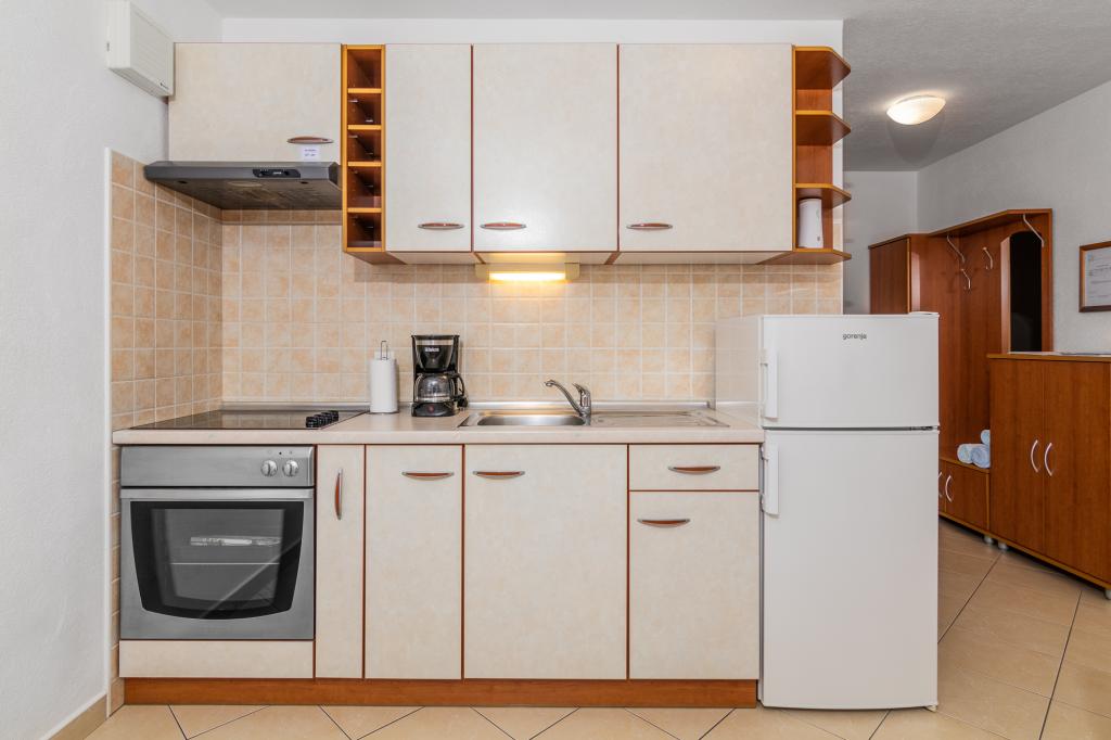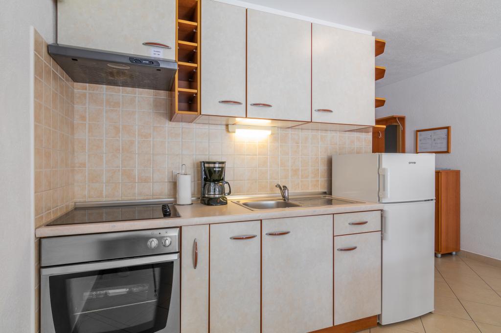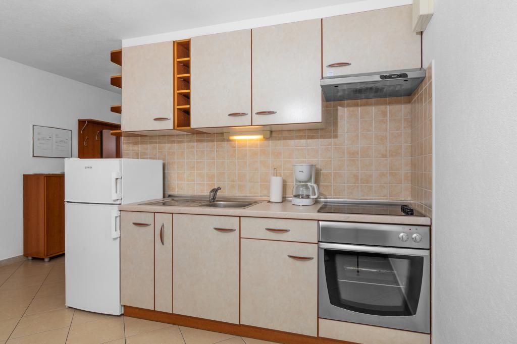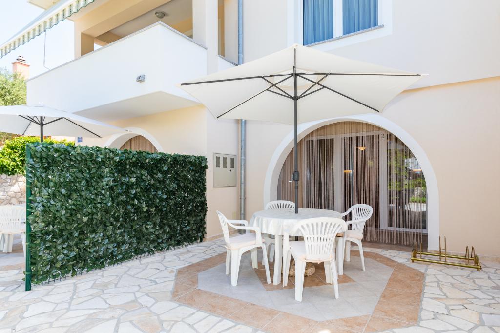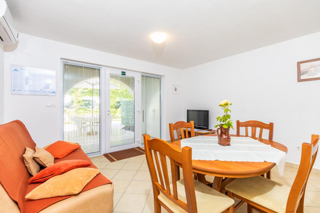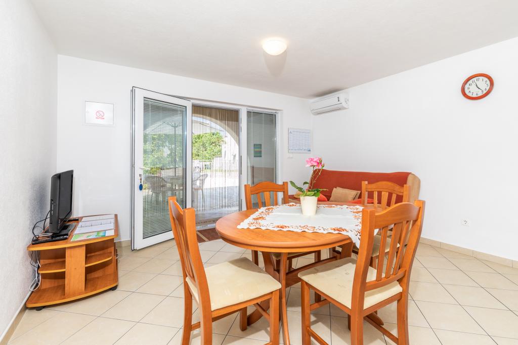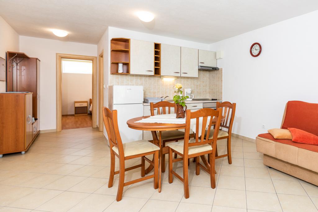 Namestitvene enoteZa rezervacijo je potrebno vplačati akontacijo 100€ preko banke (IBAN), preostanek računa pa plačate v gotovini ob prihodu. Prihod v apartma je možen po 14. uri, odhod pa do 10. ure. Osnovna cena v apartmaju je za 2 osebi. Za vsako naslednjo osebo na dodatnem ležišču se cena zviša za 12€/dan (1.5.-14.7., 21.8.-30.9.) oziroma 15€/dan (15.7.-20.8.). Vsak apartma ima dodatno ležišče za 2 osebi. Otroci do 3. leta bivajo brezplačno, če ne uporabljajo dodatnega ležišča. Bivanje do 3 noči poviša ceno storitve za 30 %. Turistična taksa je vključena v ceno.