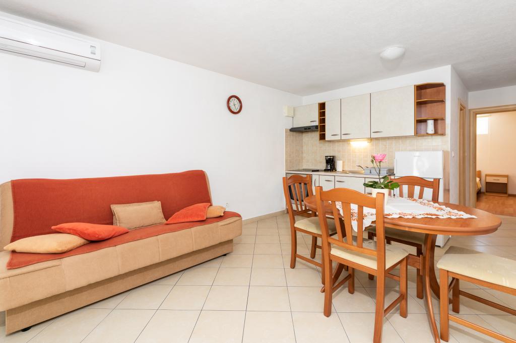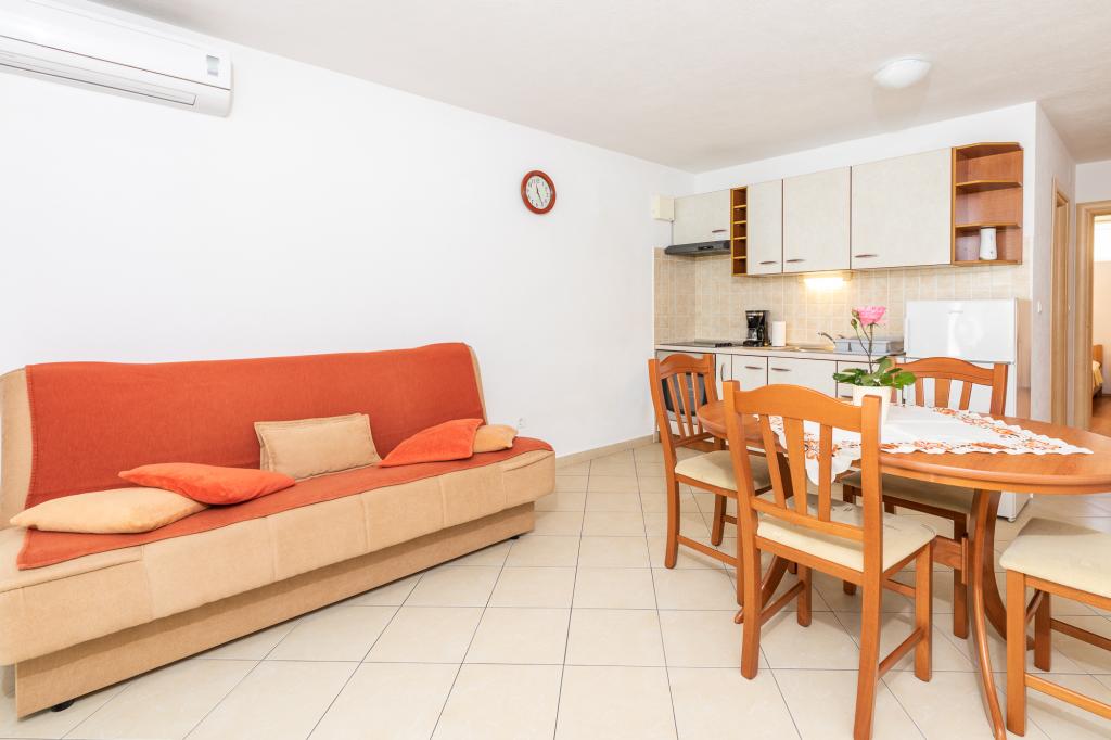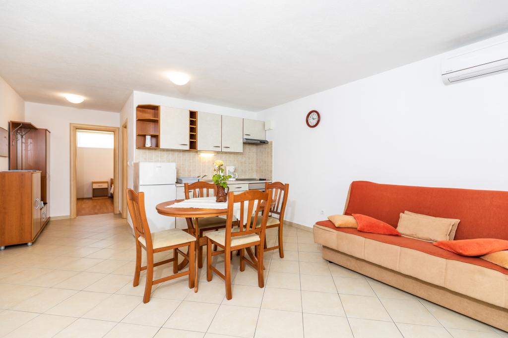 Apartma za 2 - 4 osebe v mirnem delu Punata na otoku Krku. V apartmaju je na voljo WI-FI internet, satelitska TV, klima. Bližina vseh vsebin: plaža, trgovine, restavracije, center Zagotovljeno parkirišče v senci