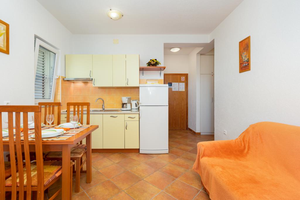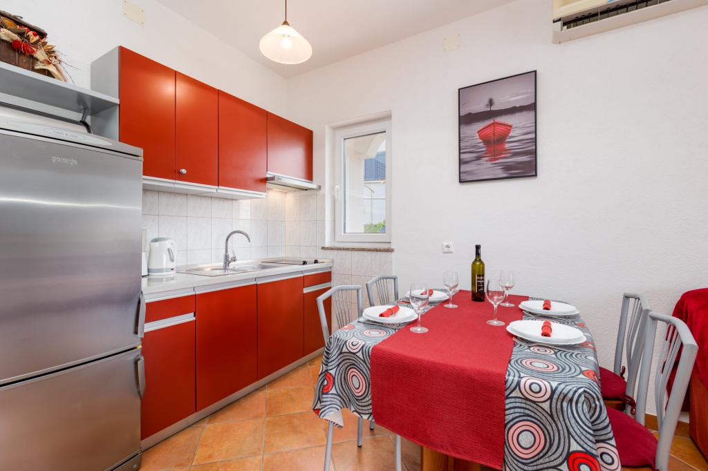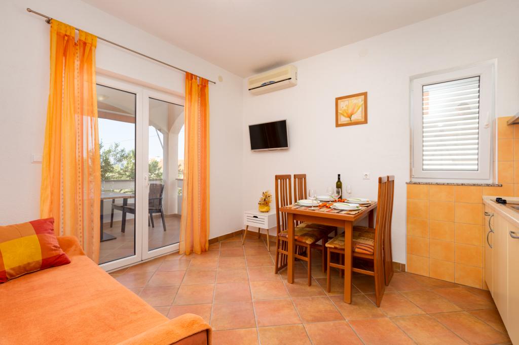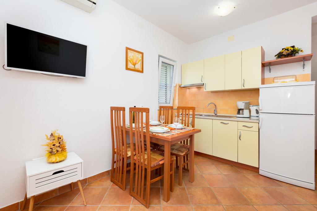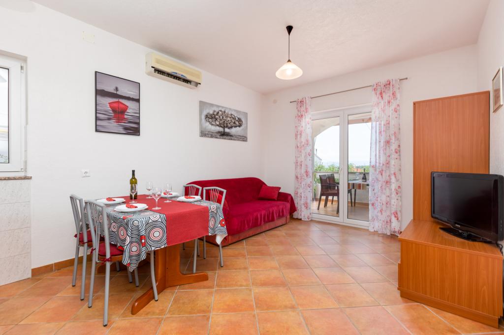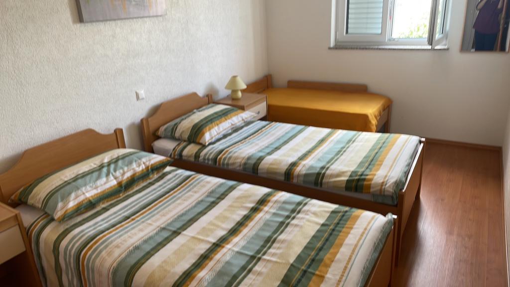 V majhnem obalnem mestu Punat, v prelepem okolju oljk in smokve, se nahaja naša družinska hiša z dvema sodobno opremljenih apartmajev v pritličju. Vsak apartma ima dve ločeni spalnici, da sprejme štiri osebe, kopalnico s tušem, kuhinja in dnevna soba z raztegljivim kavčem za dve osebi. Dnevna soba ima dostop do prostorno pokrito teraso z mizo in stoli. Apartmaji so opremljeni s klimatsko napravo, SAT / TV, posteljnino, pomivalni stroj, hladilnik z zamrzovalnikom, kavni avtomat, jedi in drugih kuhinjskih pripomočkov. Za vaš avto parkirno mesto v našem dvorišču. Dobrodošli!