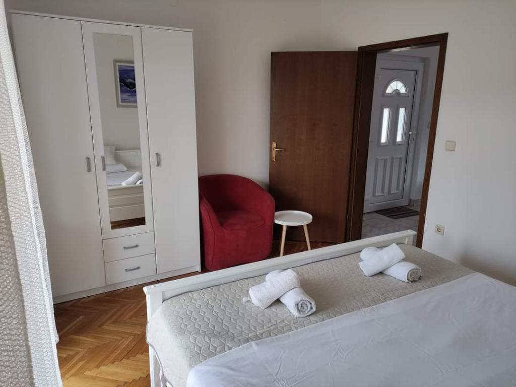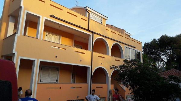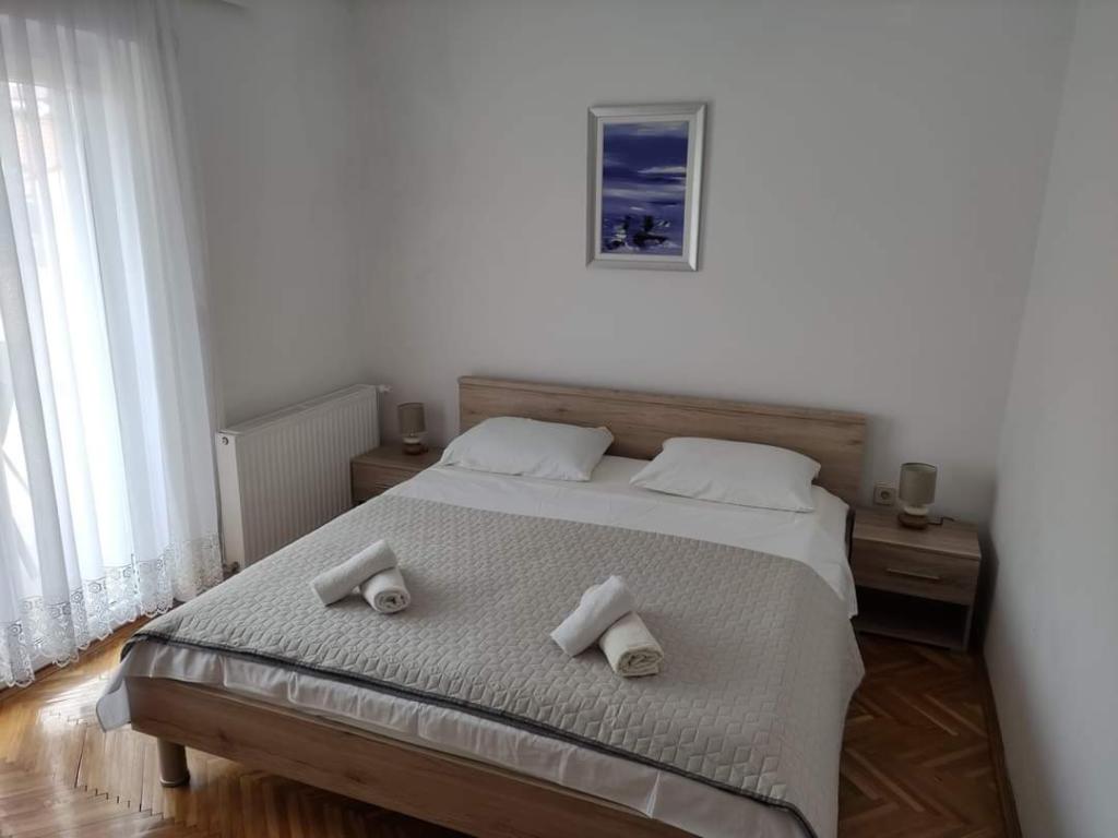 Apartmaji Katarina se nahajajo v mirni ulici 200 metrov od plaž, ki ponujajo številne vsebine za otroke in odrasle. Od centra smo oddaljeni 800 m, prijeten sprehod ob morju. Apartmaji so standardno opremljeni s klimo, internetom-WI/FI, TV/SAT. Vsak apartma ima svojo teraso in ločen vhod, tako da ima vsak gost maksimalno zasebnost. Za vse goste imamo tudi veliko parkirišče. Apartmaji v drugem nadstropju imajo pogled na morje. Za vse naše goste nudimo tudi zunanji žar.