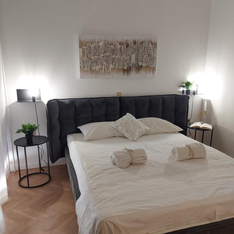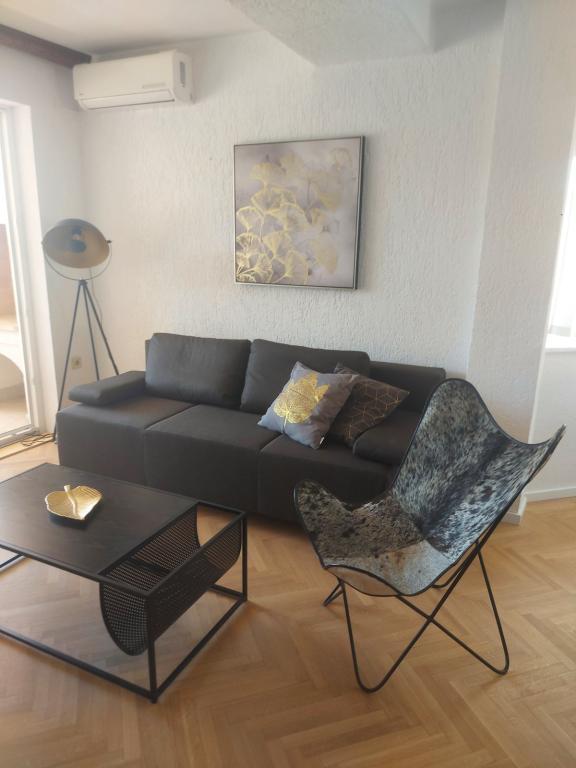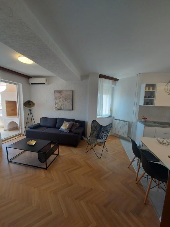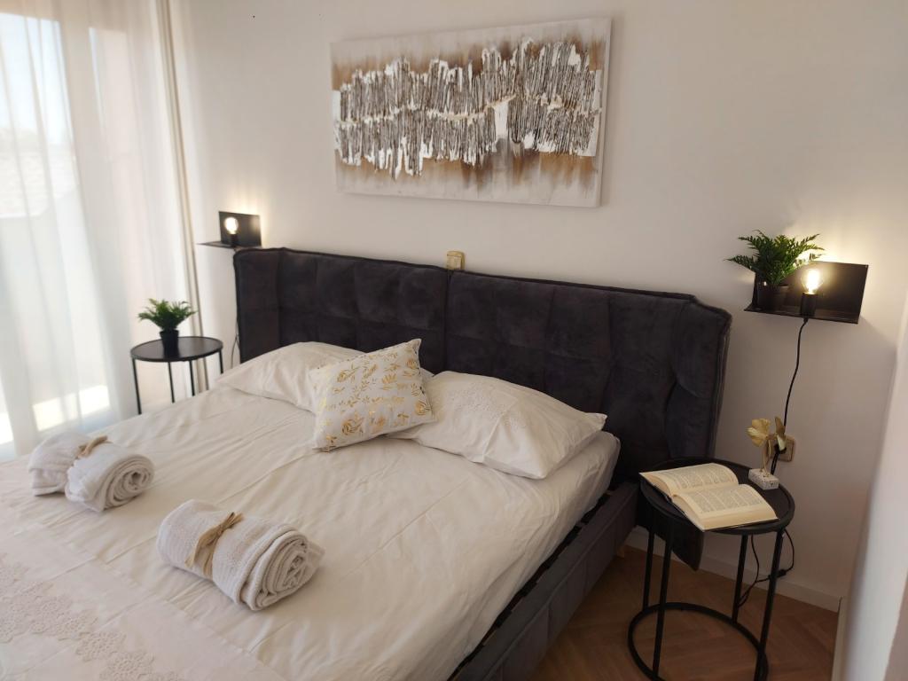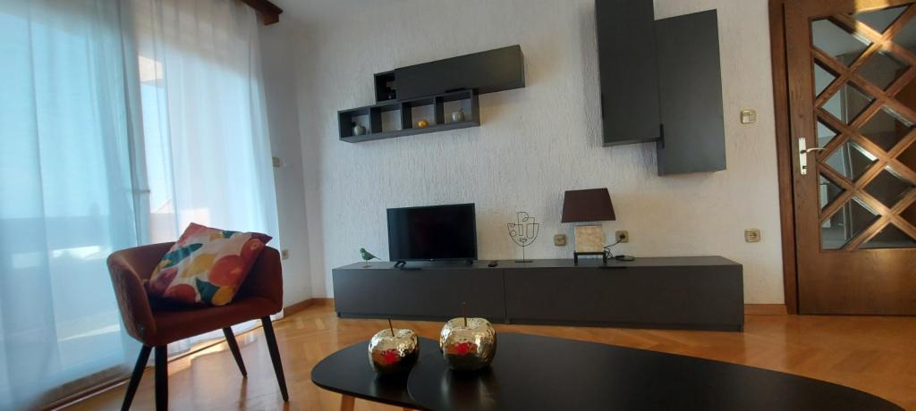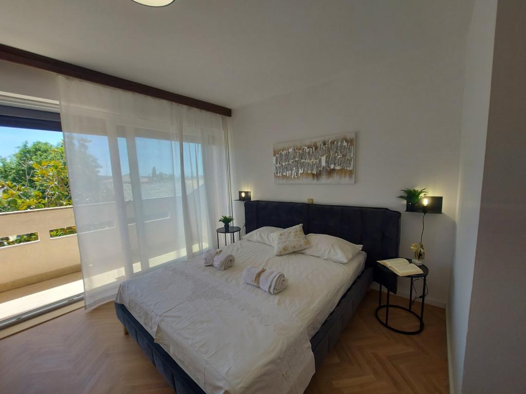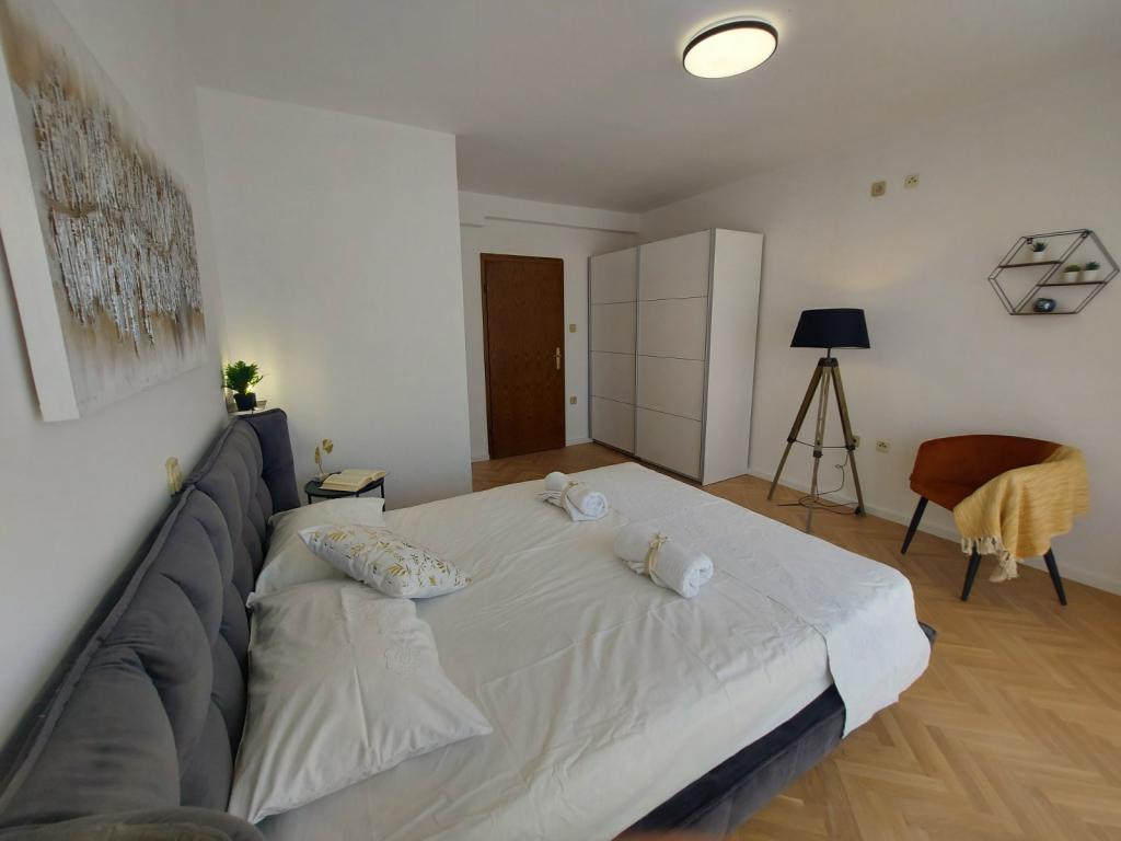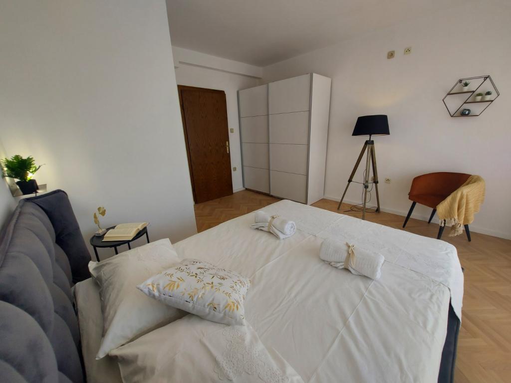 Naši apartmaji se nahajajo v prvem nadstropju družinske hiše. Apartmaji so na novo urejeni, moderno in funkcionalno opremljeni (WI-FI, klima, pomivalni stroj) in zagotavljajo prijetno in mirno bivanje. Na dvorišču hiše je zagotovljeno brezplačno zaprto parkirišče. Na dvorišču je paviljon z žarom, kjer lahko uživate v senci. Bistvene ugodnosti, kot so plaže, restavracije in trgovine, so dosegljive peš.