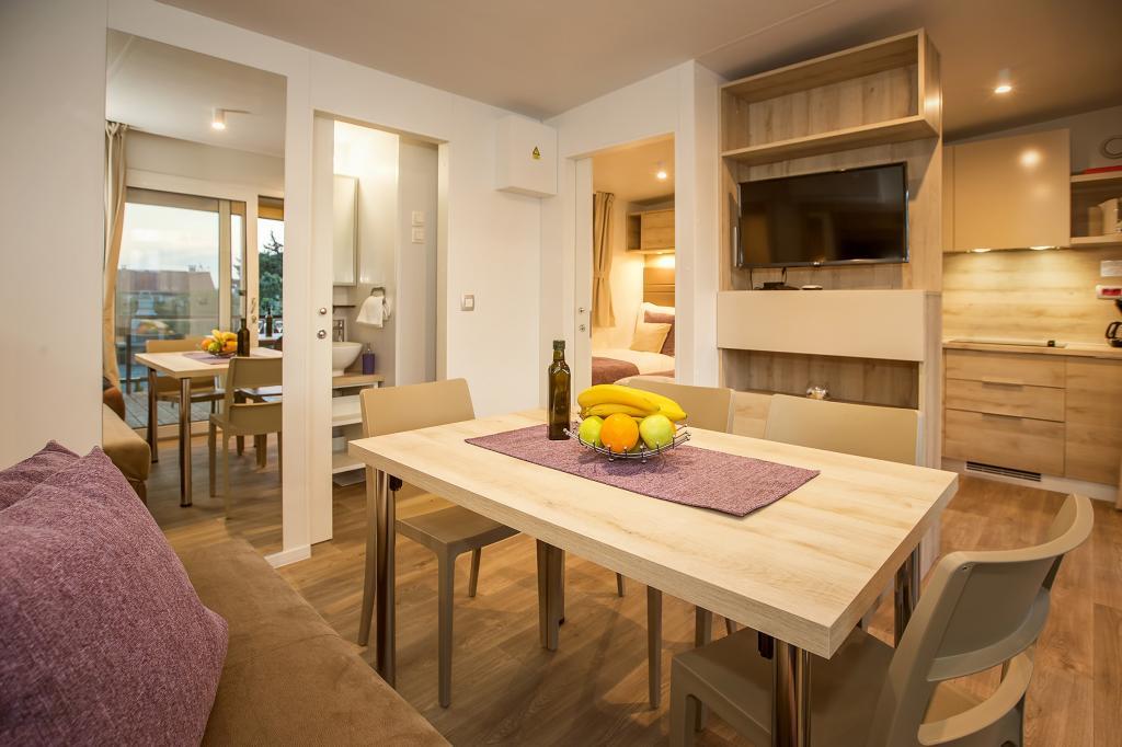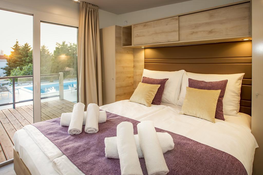 Mobilne hišice "Sanmar" se nahajajo v mestu Punt na parceli 900m2, obkrožene z mediteranskim zelenjem, le nekaj minut hoje od prodnate plaže. Namestitev je na voljo v treh modernih mobilnih hišicah, od katerih lahko vsaka sprejme 4 osebe plus dva otroka na dodatnem ležišču. Hiše imajo dve spalnici, soba z zakonsko posteljo ima svojo kopalnico, obstaja tudi možnost dodatnega ležišča za dva otroka na kavču v dnevni sobi. Kuhinja je opremljena s posodo in kuhinjskimi aparati. Vsaka mobilna hišica ima skupno dve kopalnici s tušem in delno pokrito teraso 20m2. Mobilne hišice imajo klimatsko napravo, satelitsko televizijo in brezžični internet. Gostom je na voljo skupni bazen (8x4m), ležalniki ob bazenu, parkirno mesto, stojalo za kolesa, skupni žar in uporaba pralnega stroja (na zahtevo). Kompleks Sanmar je idealen kraj za miren družinski dopust!