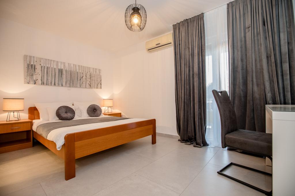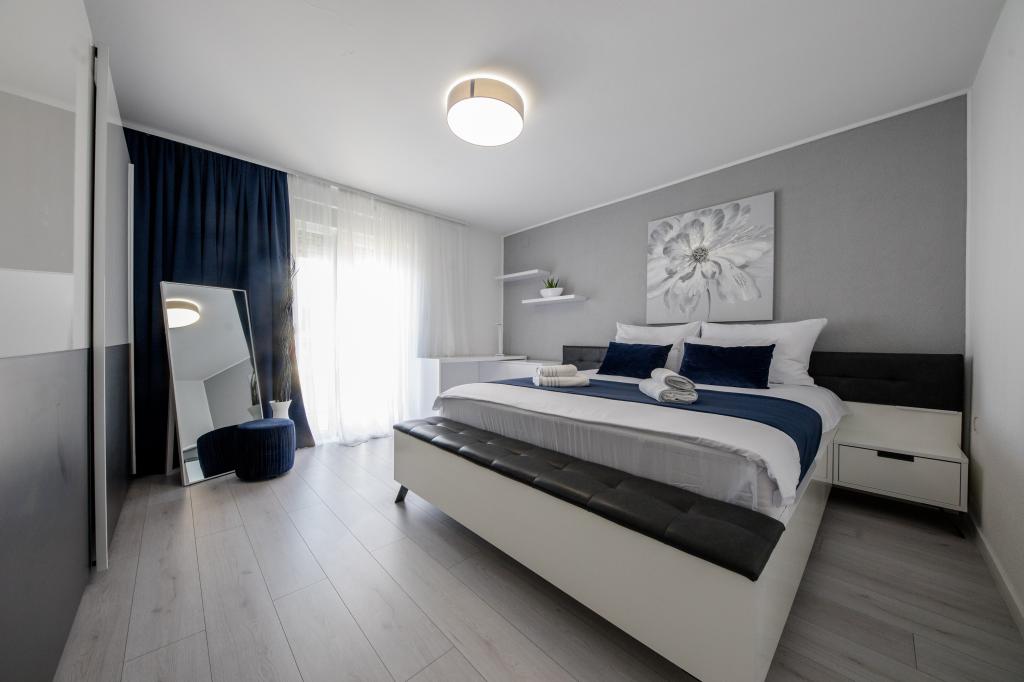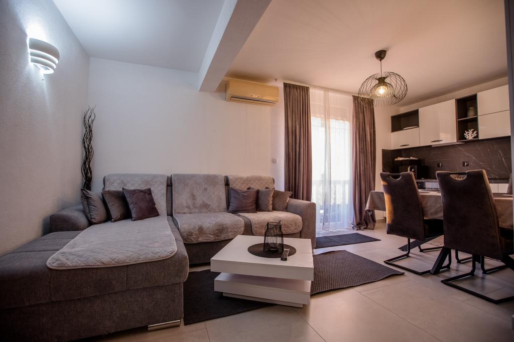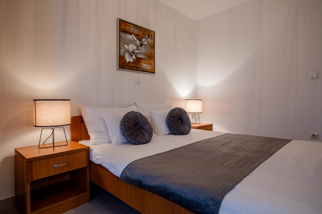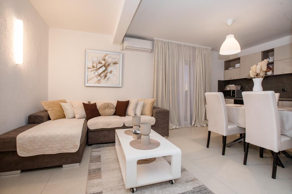Popolnoma in moderno opremljeni apartmaji se nahajajo v mirnem predelu, v bližini morja. Objekt je na odlični lokaciji, le nekaj minut hoje do plaže in približno 10 minut hoje do centra mesta in vseh ugodnosti. Dvorišče je urejeno in vzdrževano, gostje pa imajo na voljo garažo za svoj avto.