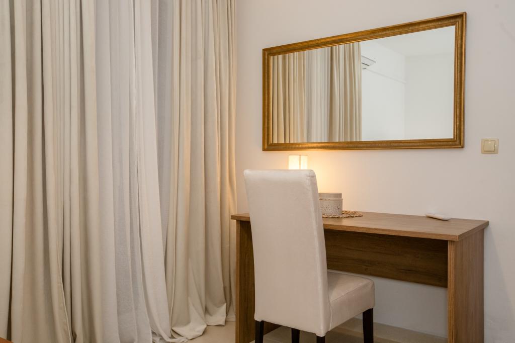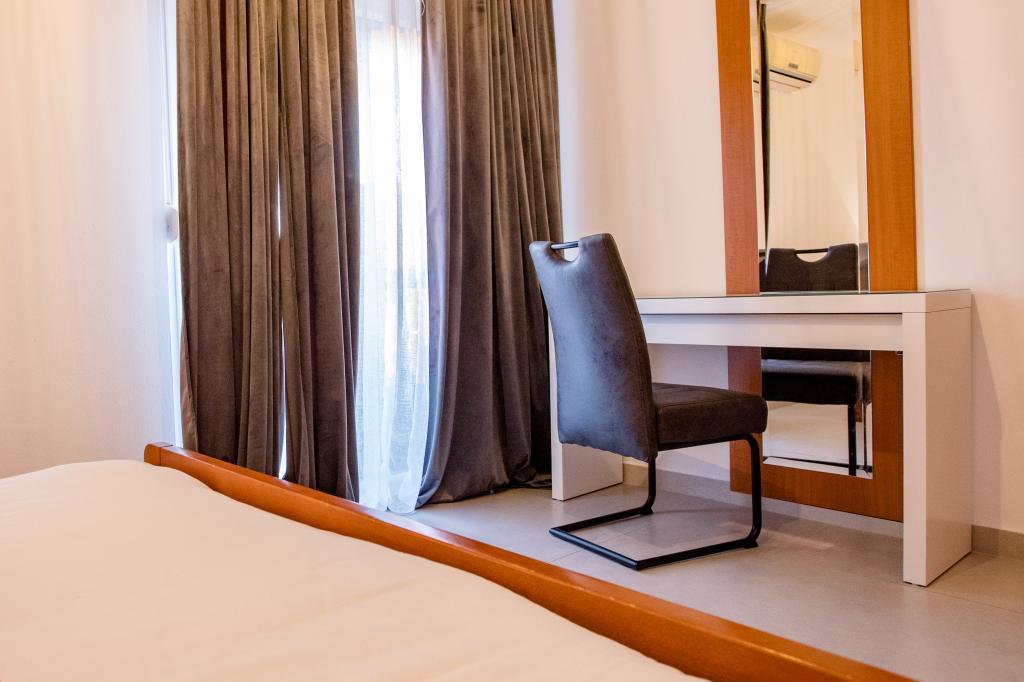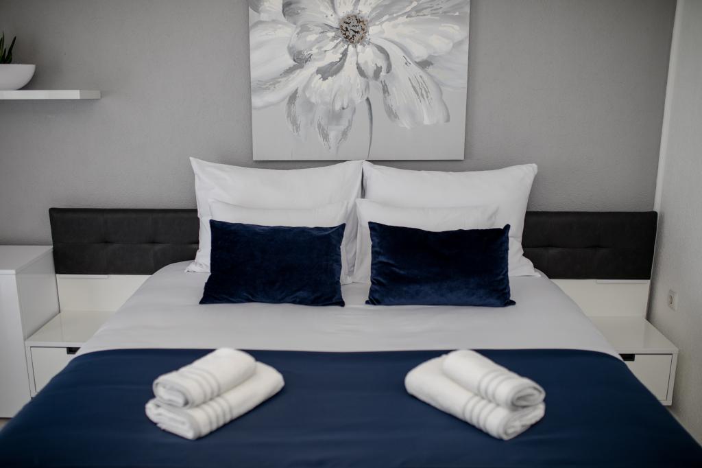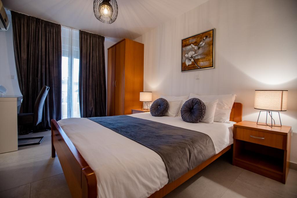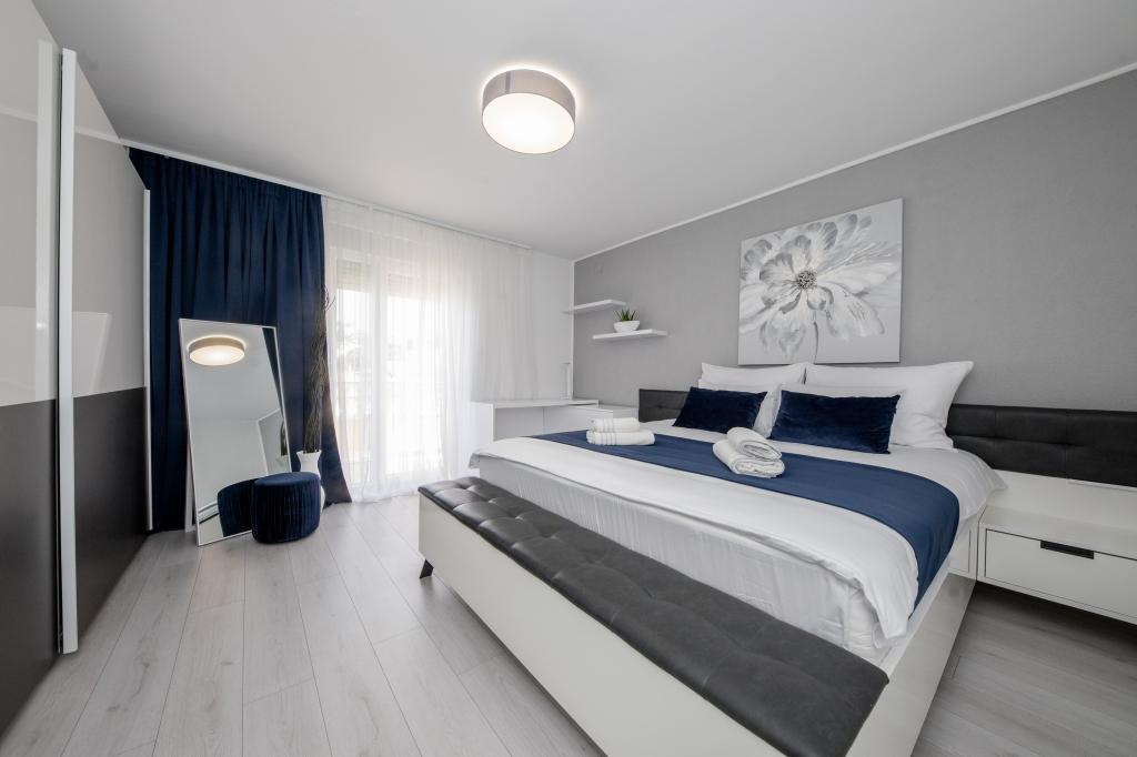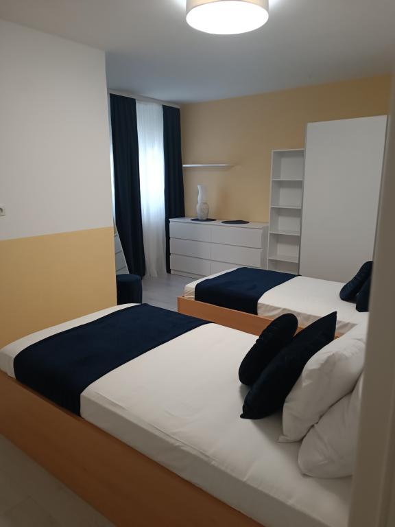 Popolnoma in moderno opremljeni apartmaji se nahajajo v mirnem predelu, v bližini morja. Objekt je na odlični lokaciji, le nekaj minut hoje do plaže in približno 10 minut hoje do centra mesta in vseh ugodnosti. Dvorišče je urejeno in vzdrževano, gostje pa imajo na voljo garažo za svoj avto.