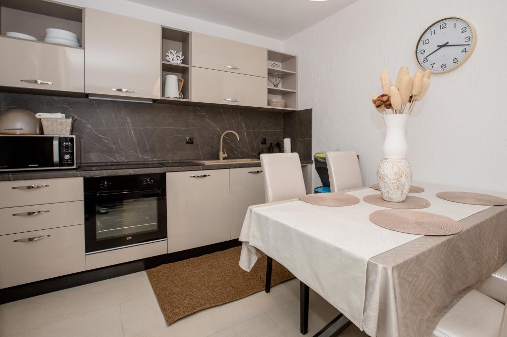 Zelo odličen apartma, vse je zelo moderno, kuhinja je popolnoma opremljena, razgled je zelo lep, plaža je oddaljena približno 5 minut hoje. Preprosto ga priporočam vsem!