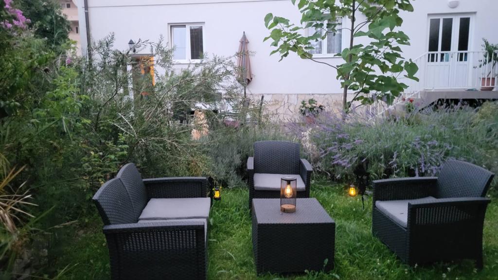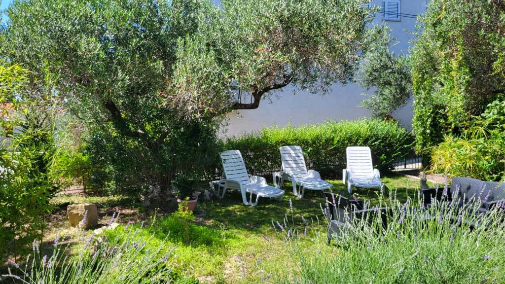 Apartmaji Padova 2 se nahajajo na mirnem delu otoka v bližini plaže Padova II, obdani z vrtom in zelenjem okrasnih rastlin. Opremljeni so z vsem potrebnim za prijeten in brezskrben dopust; pomivalni stroj, pralni stroj, mikrovalovna pečica, kuhalnik vode, toaster, satelitski programi, WIFI... Apartmaji se nahajajo v pritličju, imajo teraso in vrt primeren za počitek v senci oljk. Na terasi je žar, ki je na voljo gostom. Plaža je oddaljena 50 metrov, po čudoviti promenadi ob morju pa je staro mestno jedro Raba dosegljivo v 20 minutah. V neposredni bližini je taksi čoln za ljubitelje vožnje z ladjico. Parkirišče je ob apartmajih in je brezplačno.
