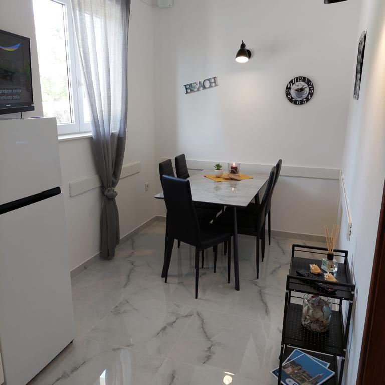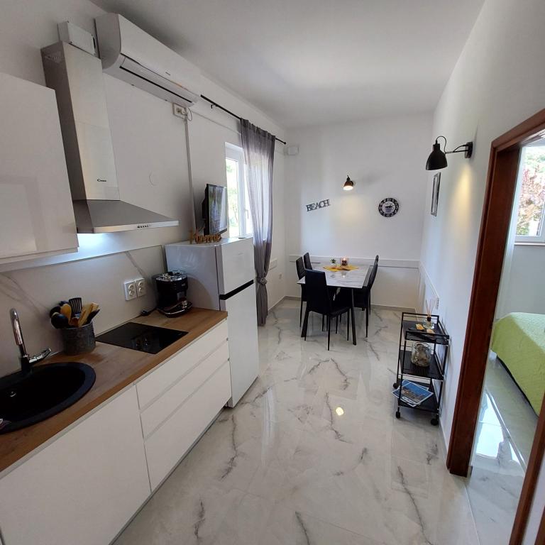Preberite več Namestitvene enotePreostali znesek se plača v gotovini na dan prihoda - ob vstopu v apartma. Predplačilo za rezervacijo se plača v višini 30-35% na naš bančni račun. Po plačilu akontacije vam pošljemo potrditev rezervacije (voucher). Cena na noč za apartma za leto 2025 vključuje popolnoma opremljen apartma s posteljnino in brisačami, davek, vodo, elektriko, 1 x klimatsko napravo. Cena apartmaja A2 RELAX velja za dve osebi, dodatna oseba pa lahko za doplačilo spi na postelji. Cena za otroka 15% -20% osnovne cene na osebo. Cena apartmaja A4 velja za do 4 osebe. Dodatna 1 oseba možna za doplačilo, 20 evrov na noč. Cene so na noč. DODATNI STROŠKI: Končno čiščenje apartmaja od 50 - 80. Turistična taksa ni vključena v ceno apartmaja in se zaračuna dodatno. Čas prihoda po 15:30. Odhod do 09:30. V obdobju od 01. 07. 2025. - 31. 08. 2025. Prihod v apartma od 16:00 ure dalje, odhod iz apartmaja pa do 9:00 ure.