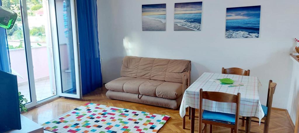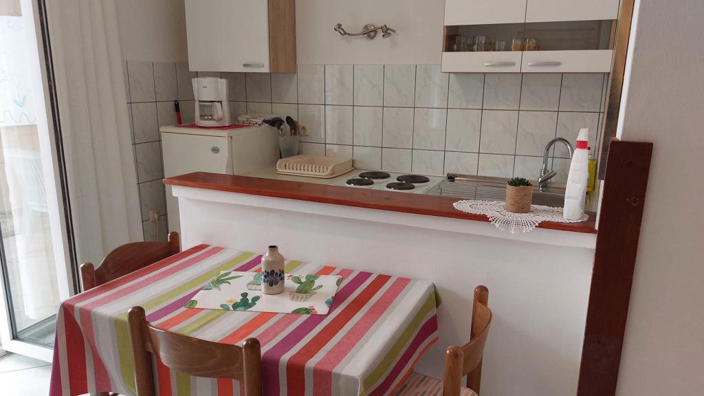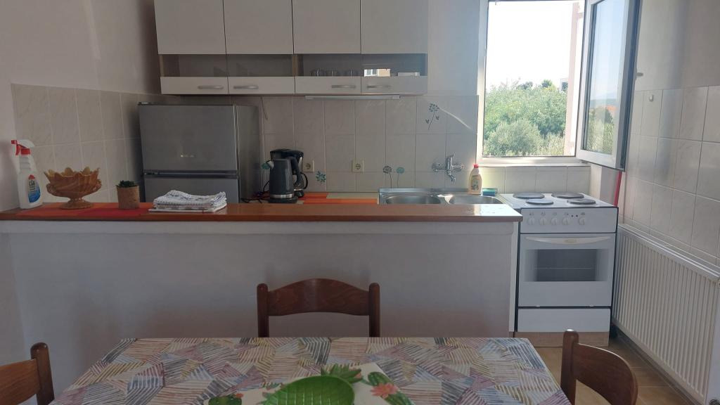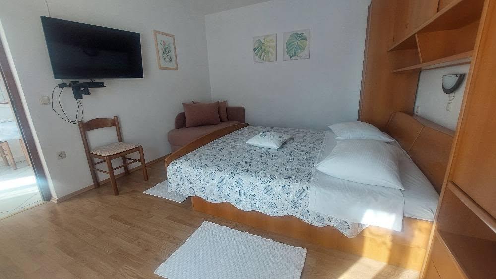 Vse je popolno! Apartma urejen, majhen balkon, primeren za 2 osebi. Parkiranje v senci. Trgovina in pekarna 2 min hoje. Gospa Sanja in njena mama, zelo prijazni, smo dvakrat dobili domači paradižnik in papriko. Do centra približno 20-30 min hoje. Priporočam sprehod do tja in nazaj s čolnom za približno 15 kun na osebo do Marine 3 in od tam še 2 minuti hoje do apartmaja. Popolnoma nič za pritoževanje! Pozdravi