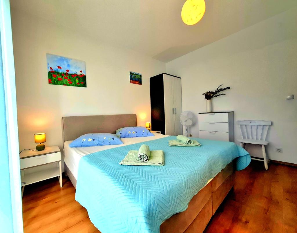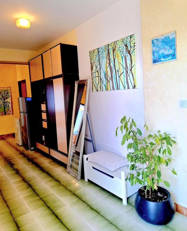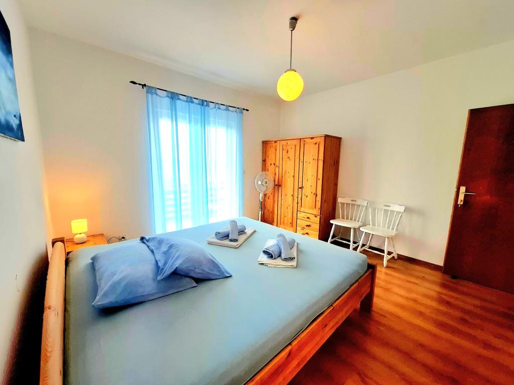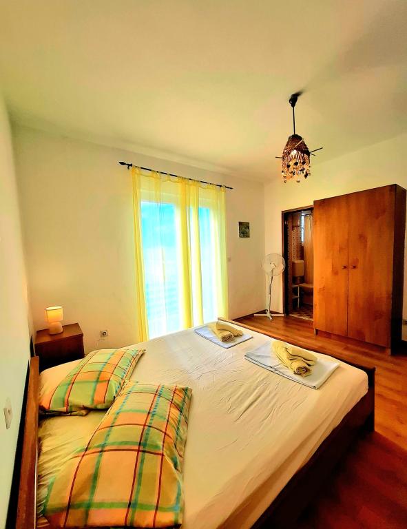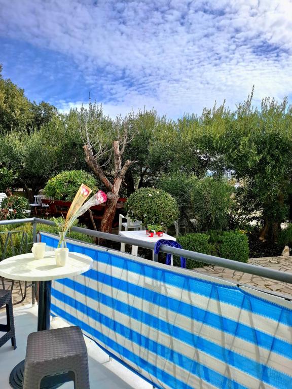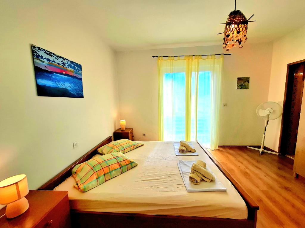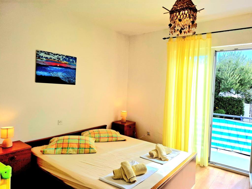 Ponujamo udobne in zračne sobe tik ob morju, idealne za popotnike, ki iščejo cenovno ugodno namestitev (po nizkih stroških) na odlični lokaciji. Vsaka soba ima svojo kopalnico in balkon, udobne postelje in talni ventilator za udobnejše bivanje. Rumena soba ima prostor za otroško posteljico (brezplačno) in dodatno ležišče (za doplačilo) in se zato lahko uporablja kot družinska soba. Gostom je na voljo brezplačno parkiranje, velika terasa in dobro opremljen skupni kotiček za pripravo zajtrka v prostorni dvorani. (Kuhinje ni). Posebna prednost je naš vrt v senci oljk z ležalniki in mizami - idealen kraj za sprostitev s hitrim brezžičnim internetom, ki je na voljo vsem gostom. Brez televizije in klimatske naprave je poudarek na pristnih poletnih počitnicah. Nahajamo se le nekaj korakov od plaž, promenade in barov na plaži, zaradi česar smo odlično izhodišče za aktivne počitnice po dostopni ceni. Le 15 minut hoje nas loči od mesta Rab.
